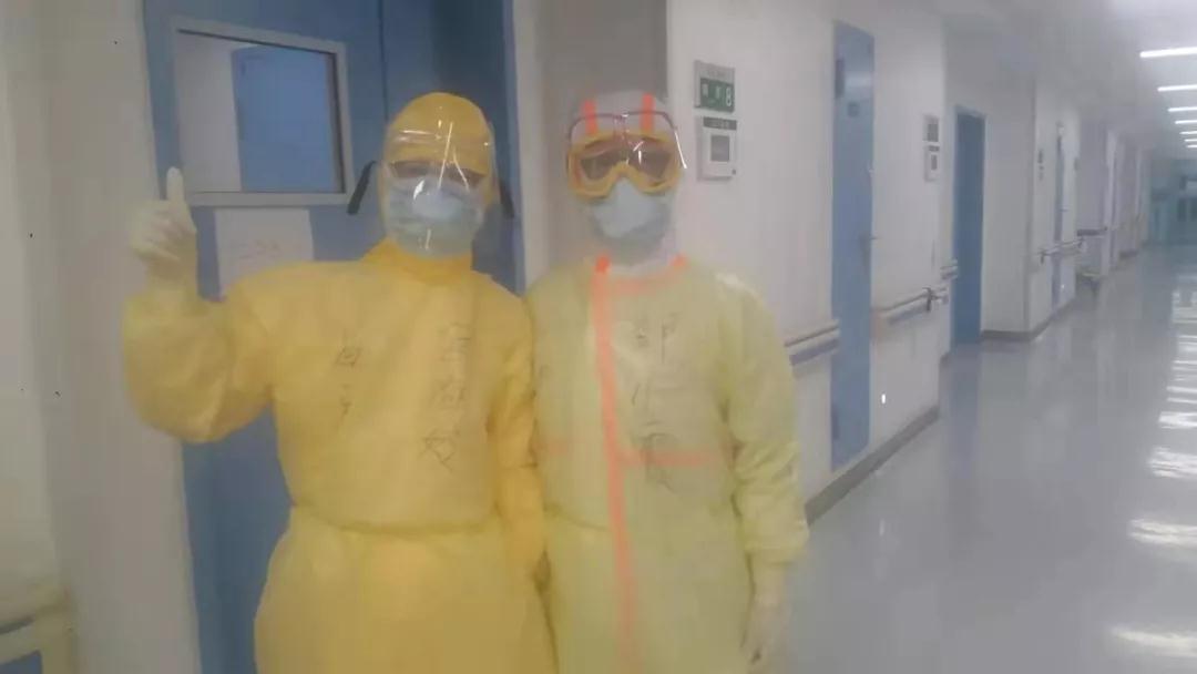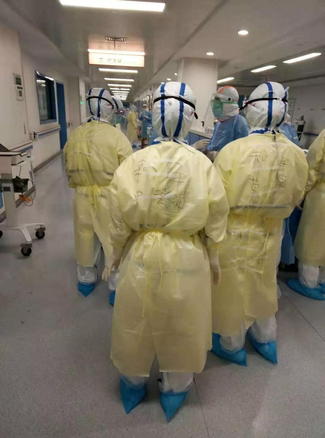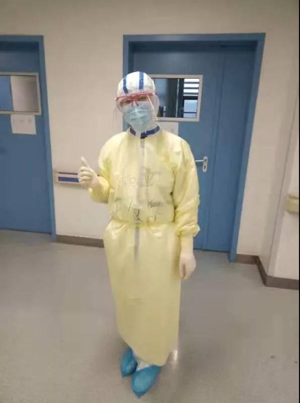 在防护服上写下医院名称和自己的姓名,这是医护人员为了辨认彼此所留下的标记。