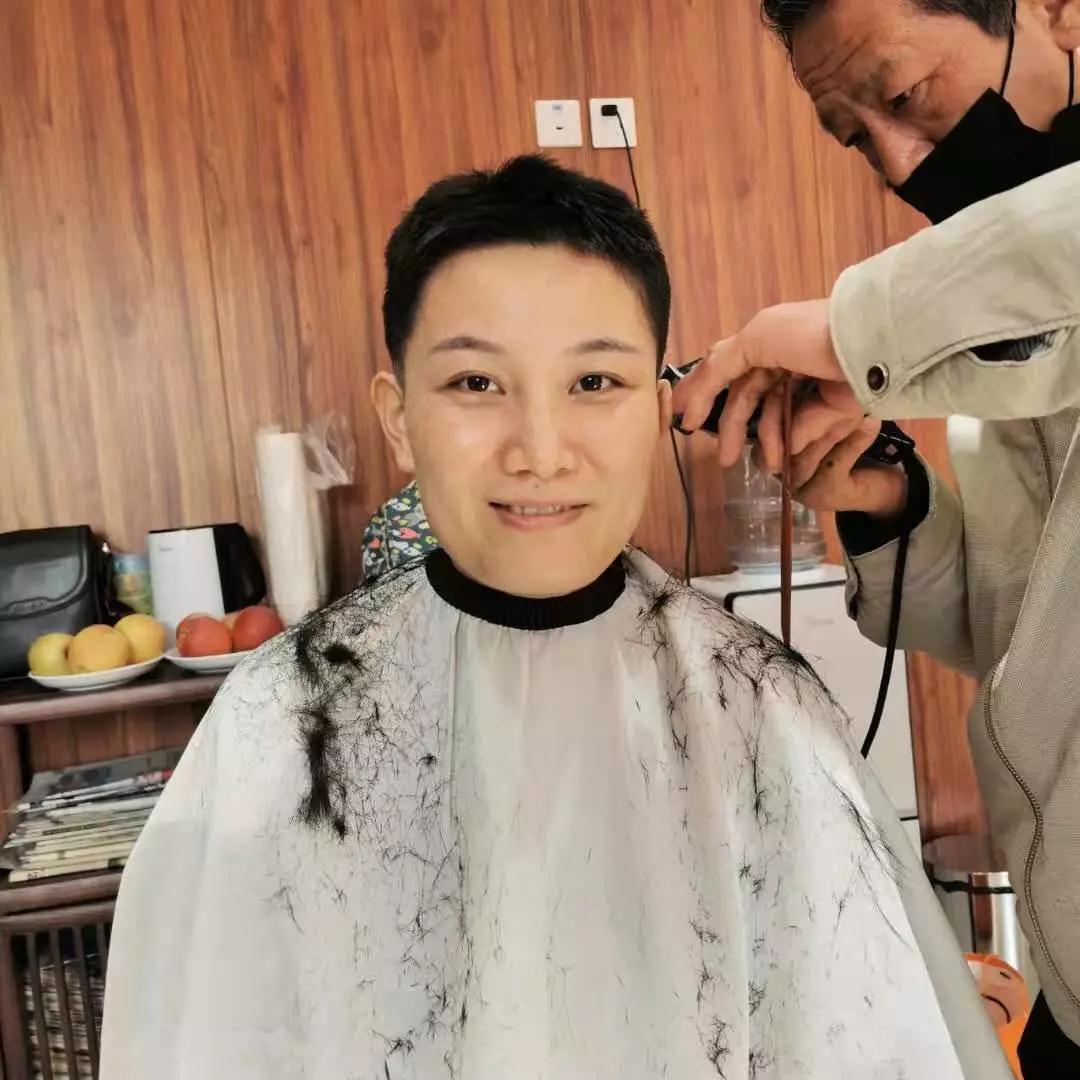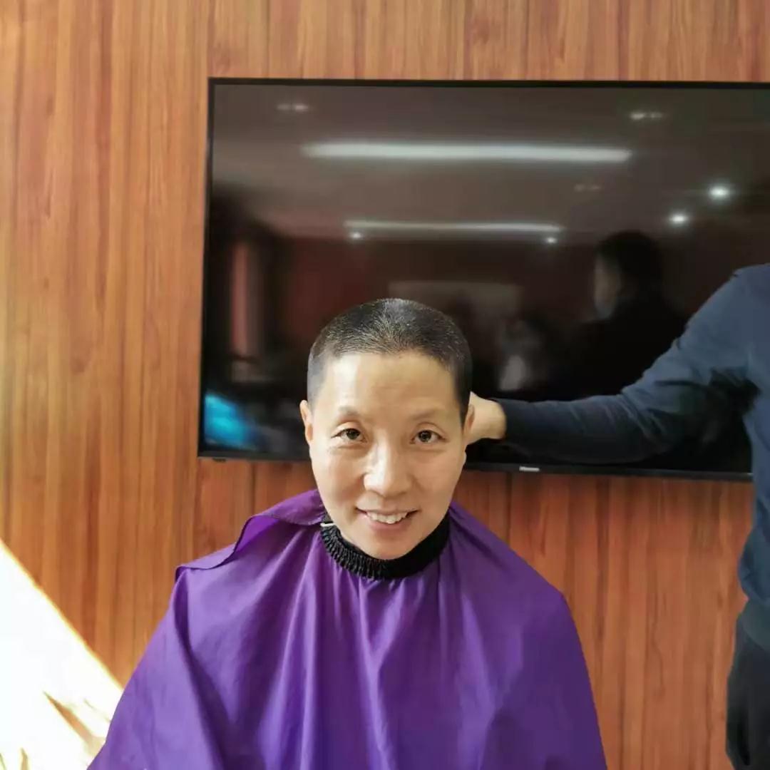 为了方便穿脱防护服,也为了避免交叉感染,呼吸内科护士长郭芽带头剃了“光头”。本来想着年前给头发做个“造型”,但却因突如其来的疫情搁置了,现在她的愿望实现了,而且这么“个性”。