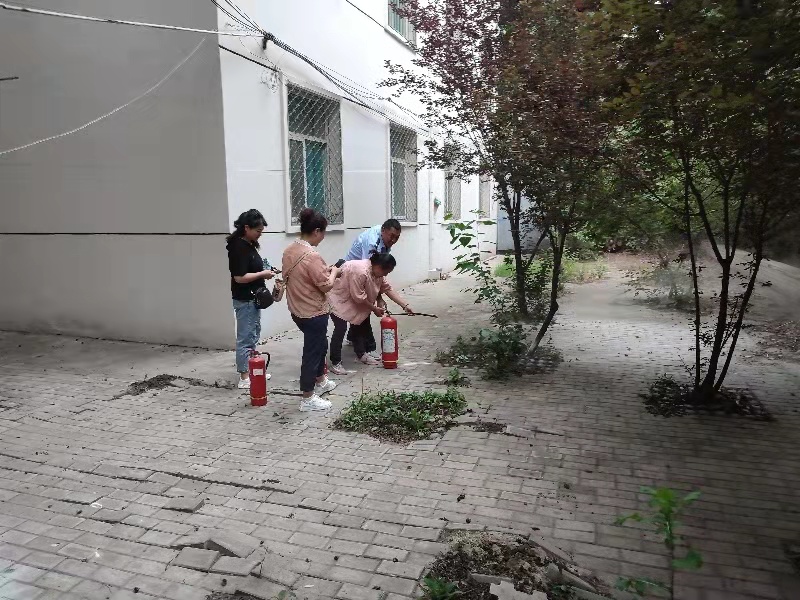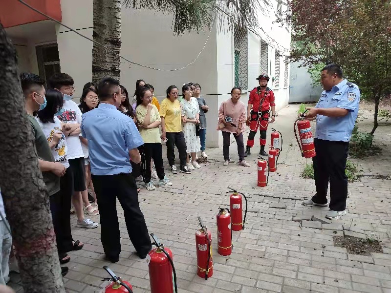 保卫处工作人员详细讲解了干粉灭火器的使用方法,并指导公寓楼管理人员和学生现场使用了灭火器。