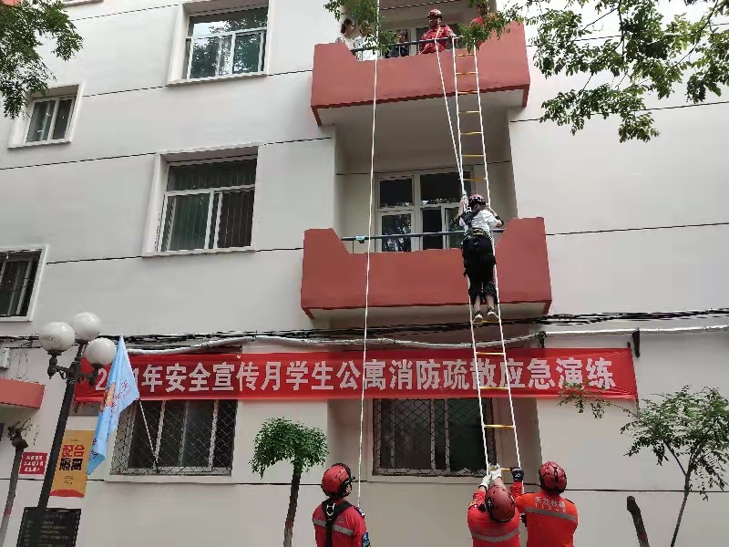 通过此次演练,参加演练的学生和相关工作人员初步掌握了消防软梯的使用方法并能熟练操作灭火器进行灭火,达到了演练的预期目的,进一步筑牢了我校“平安校园”建设根基。