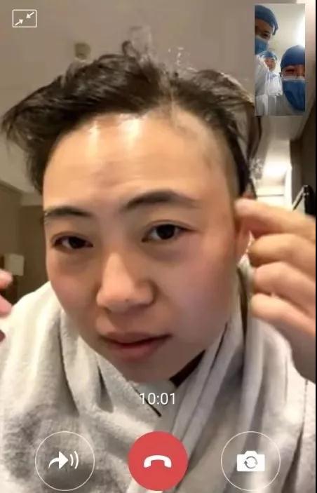我不知道该怎么心疼你,我的好姑娘。走的时候你笑靥如花,青丝如瀑;到了“战场”,虽然穿了防护服,却依然有些许的发丝暴露,你用简陋的工具自行剃了鬓角。你笑着说“”别拍了,太丑。”丑吗?我的傻姑娘,你可知道这独一无二的无鬓角发型有多炫酷?这散发出白衣天使的最美光芒。