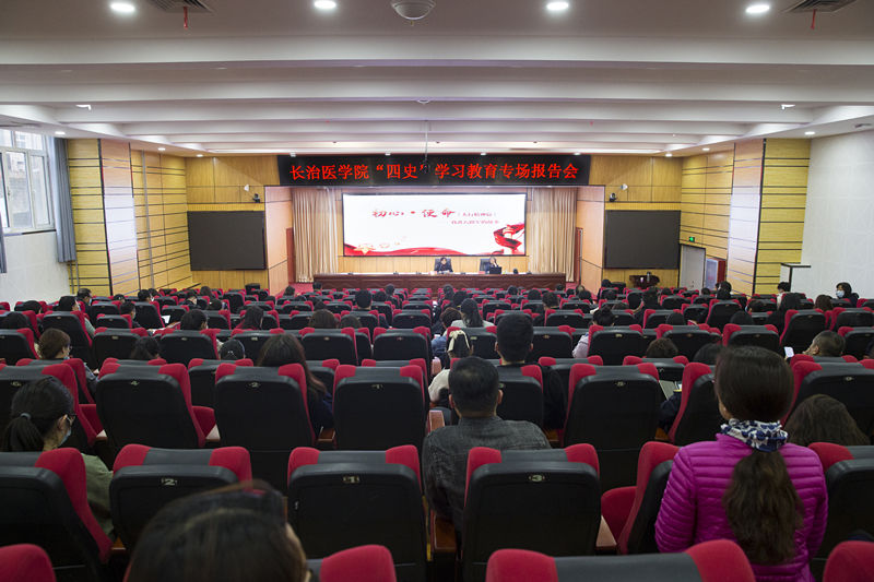 为进一步贯彻习近平总书记关于深入学习“四史”的重要指示精神,在全校广泛开展“四史”学习教育,持续深化爱国主义教育,11月17日下午,我校在临床技能中心学术报告厅举办了“四史”学习教育专场报告会,邀请八路军太行纪念馆第一代讲解员、首席讲解崔韶光作了题为“初心·使命(太行精神篇)——我讲八路军的故事”的专题报告。全体党总支书记、党支部书记、思政教师、辅导员和学生代表共140余人聆听报告。报告会由党委副书记张芳萍主持。