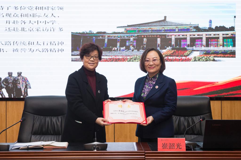 报告开始前,张芳萍代表学校为崔韶光颁发聘书,聘任其为我校客座教授。