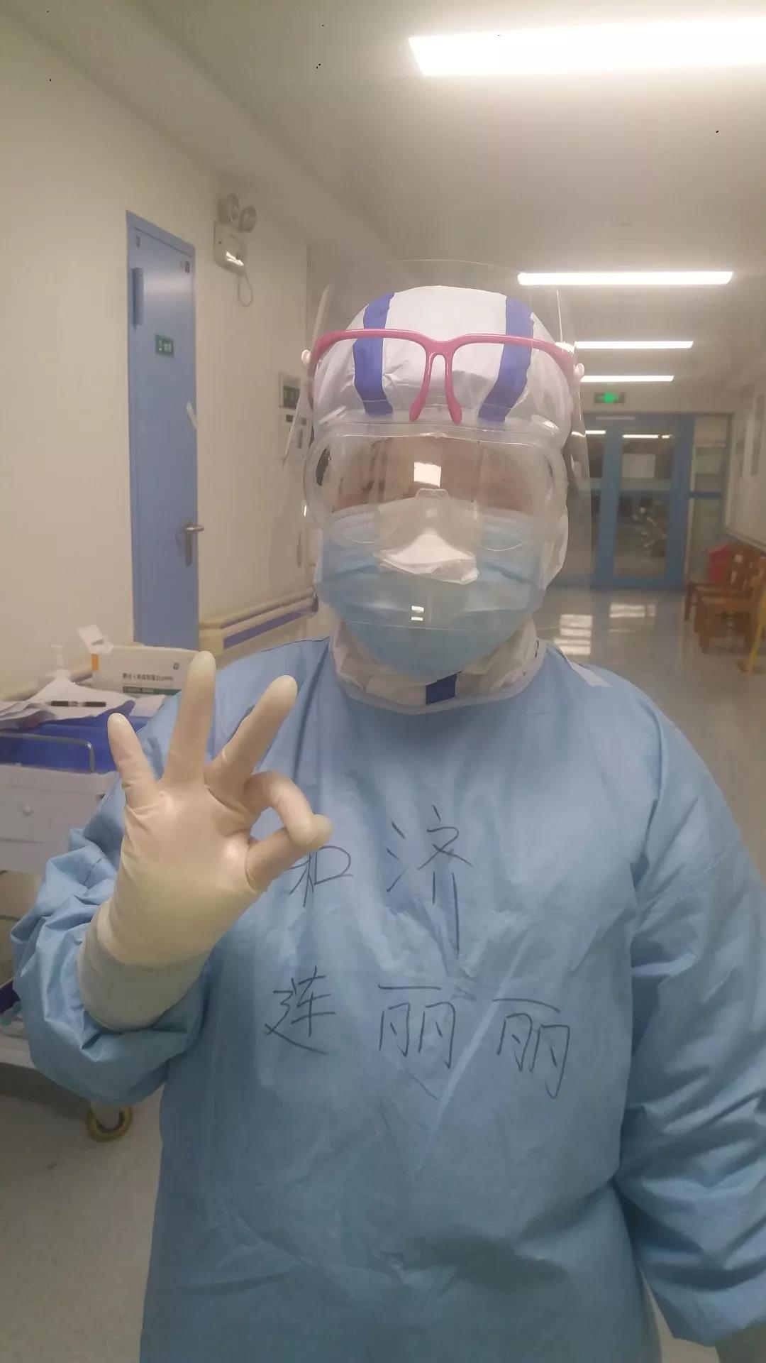 有一位阿姨,也是目前我们C8病区的重症患者。在给她测量生命体征时我顺口问到:“你家里其他人都还好吗?”阿姨看了看我说:“家人都很好,只有我被感染了,我也不知道我是怎么被感染的。”听着阿姨平静的诉说她的故事,我心情沉重。不知道该怎么接她的话,在她平静的语气中我听到了一种无奈无助和悲凉,我不想让她再去回忆被确诊时的那种恐惧和无助。我说:“你放心吧,我们来了,全国各地的医务人员都来啦!又扩增了定点医院,防护隔离措施非常到位,每个病人我们都不会放弃。”阿姨笑了,对我说:“是的,现在好了,中国好!习近平好!我的病也快好了。谢谢你们!你是山西的吧?(她可能看到我的防护服上的字了)”我说:“是的阿姨,我们陪着你,我们一起努力!你早点儿出院,我们早点儿回家。”