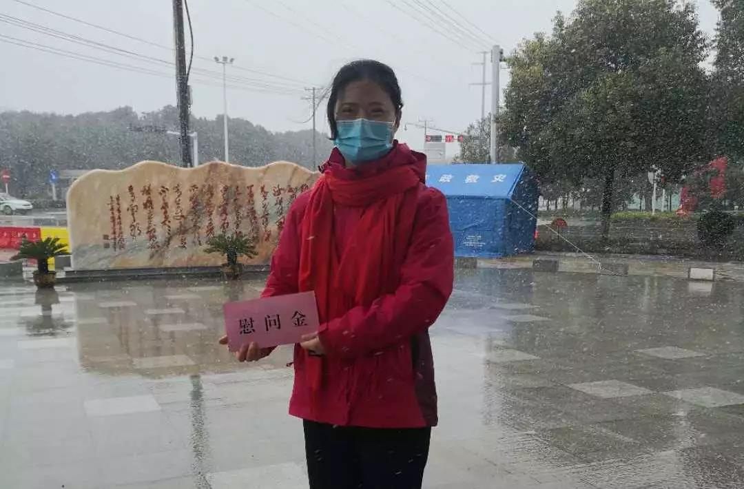 当天上午,潜江市委书记吴祖云冒着风雪来看望长治医疗队,并带来了慰问金。吴书记待人和善,口吻亲切,他希望我们能安心工作,同时也要加强自我防护,并通知下午还有几批捐赠物资的事宜需要与我们联系。