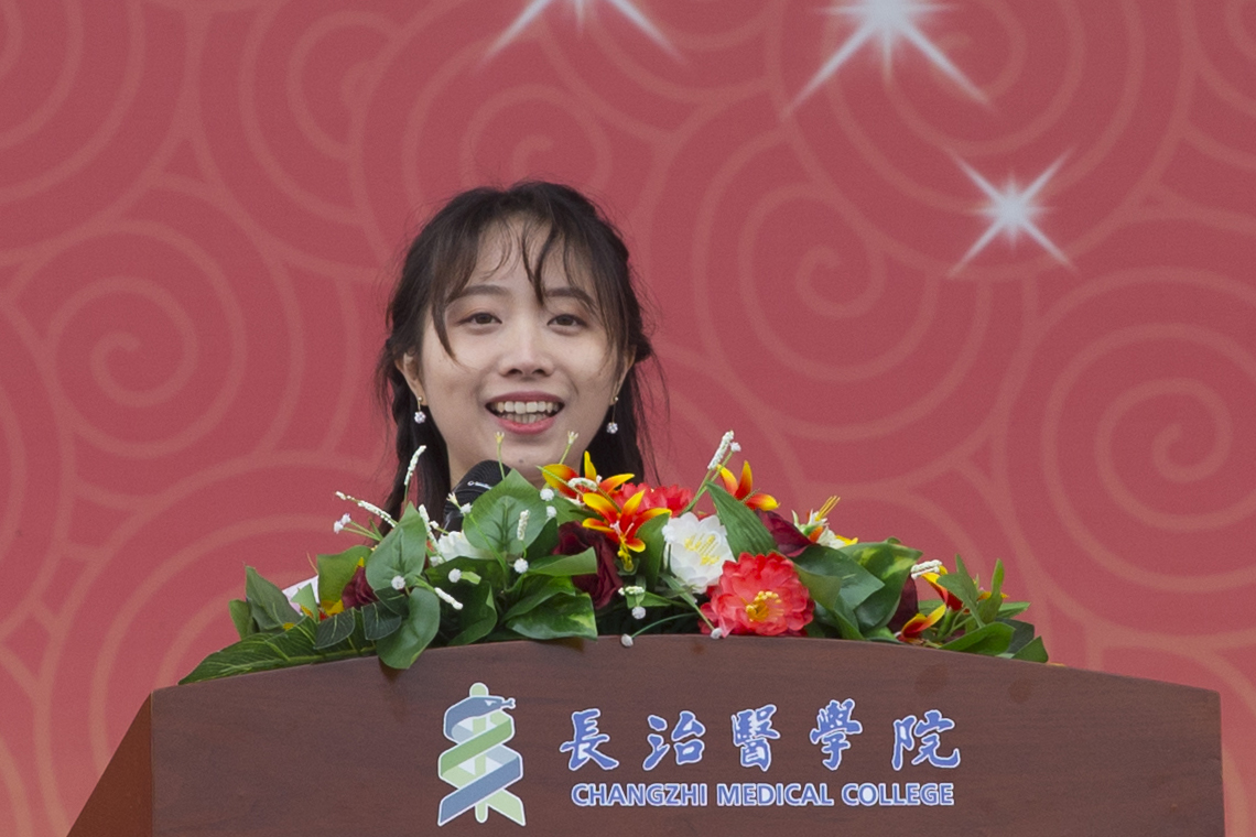 新生代表临床医学专业硕士研究生王梦儿同学、第二临床学院李先玉同学分别代表2020级硕士研究生、本科生发言。他们表示,未来将会把长医当成青春的第二故乡,把长医校训作为人生追求,不断提升综合素质,练就过硬本领,接好接力棒,跑好接力跑,同人民一起奋斗,同祖国一起前进,为实现中华民族伟大复兴贡献青春力量。
