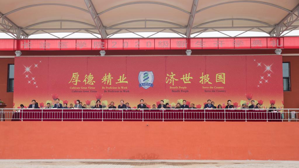 天高云淡、秋风清沁。10月12日上午,我校在五龙校区体育场举行2020级新生开学典礼。长治市上党区委书记张驰,区委副书记、区长段尧刚,区委常委、副区长张勤;我校党委书记李华荣,校长郑建中,党委副书记张芳萍,纪委书记徐建和,副校长胡春香、王金胜、郑金平,以及相关职能部门、各二级院系的党政领导出席开学典礼。今年加入长医大家庭的162名硕士研究生和3016名本科生共聚一堂,参加开学典礼。李华荣主持典礼仪式。
