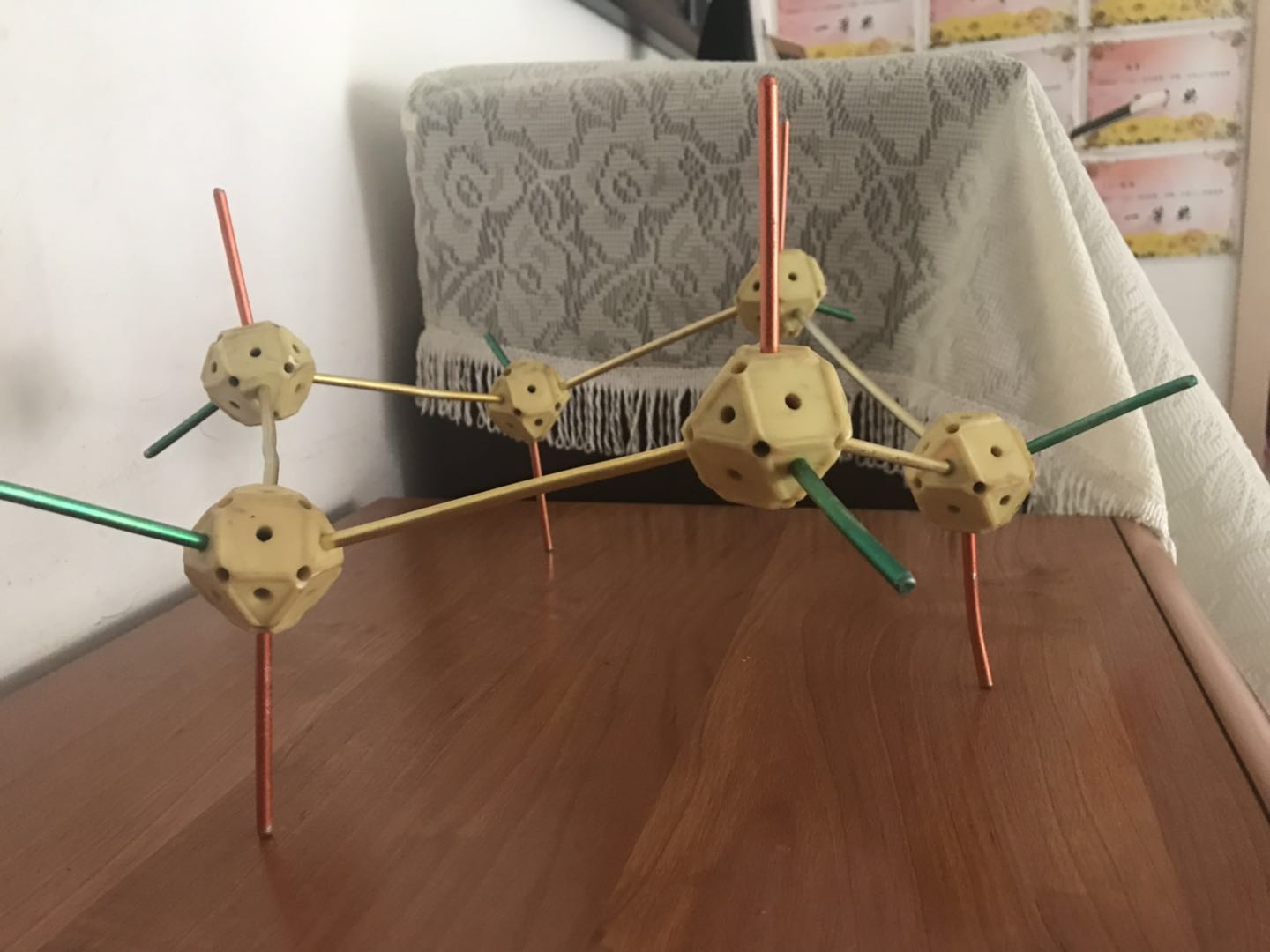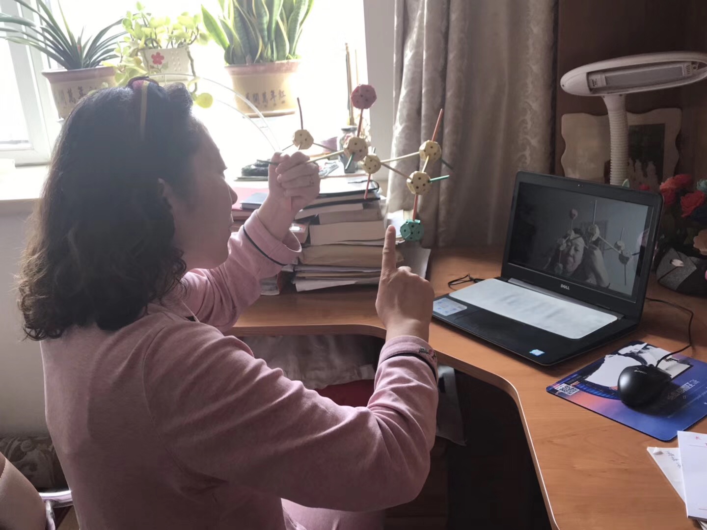 (4)精心设计教学:疫情期间的空中课堂与往常的教学模式发生很大变化,为了保证线上教学顺利开展,教师对教学内容重组,精心设计教学,精准组织教学,引导学生主动构建知识、应用知识。例如:“立体化学”一章内容,为了帮助学生培养空间思维能力,教师在家组建模型,演示讲解;指导学生利用橡皮泥和牙签制作正四面体构型并进行展示。