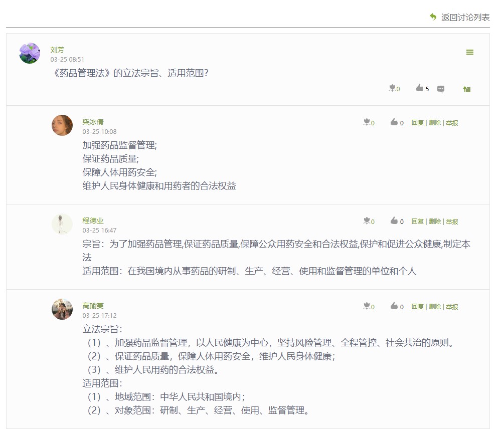 图4 课后讨论与互动