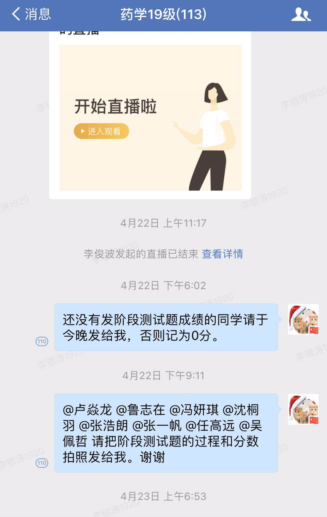 图2 直播前企业微信中通知