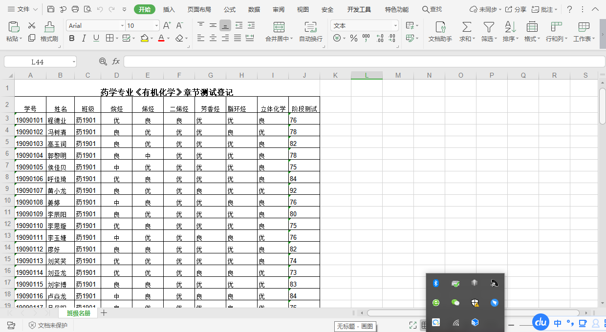 章节测试成绩记录