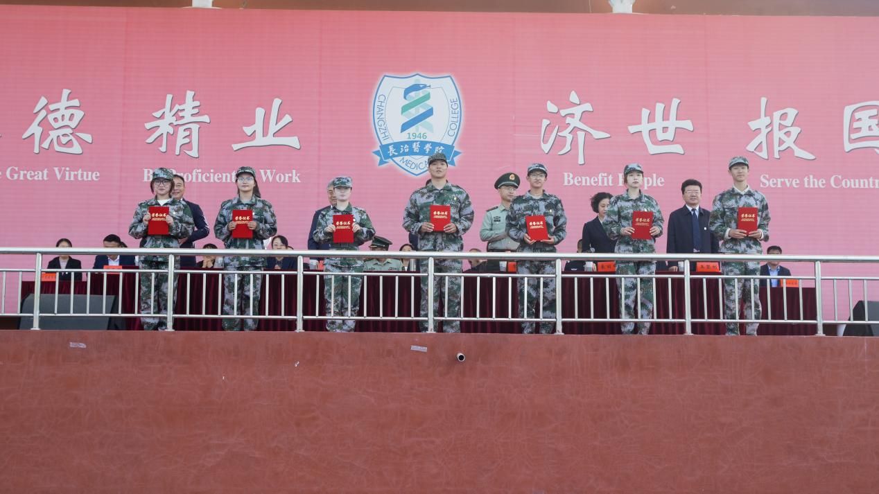 汇演结束后,来丽娜宣读了军训表彰决定,对表现突出的9个“优秀连队”、2个“标兵方队”、53名“军训标兵”以及56名优秀承训教官进行了表彰。校领导依次为获奖集体和个人颁奖。