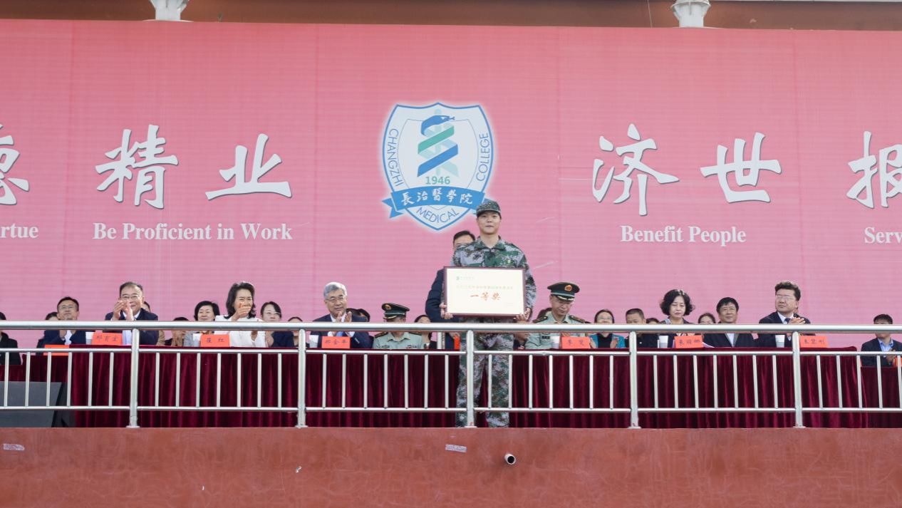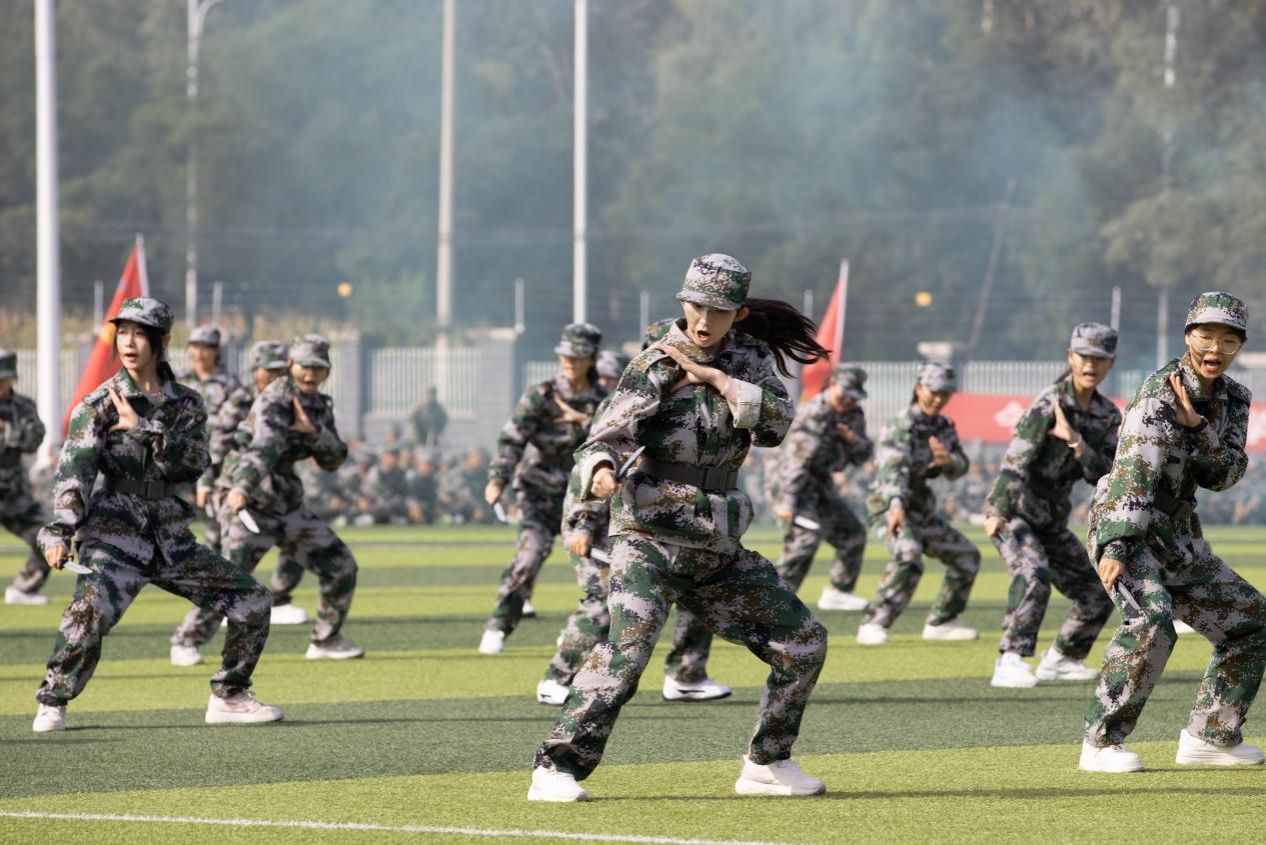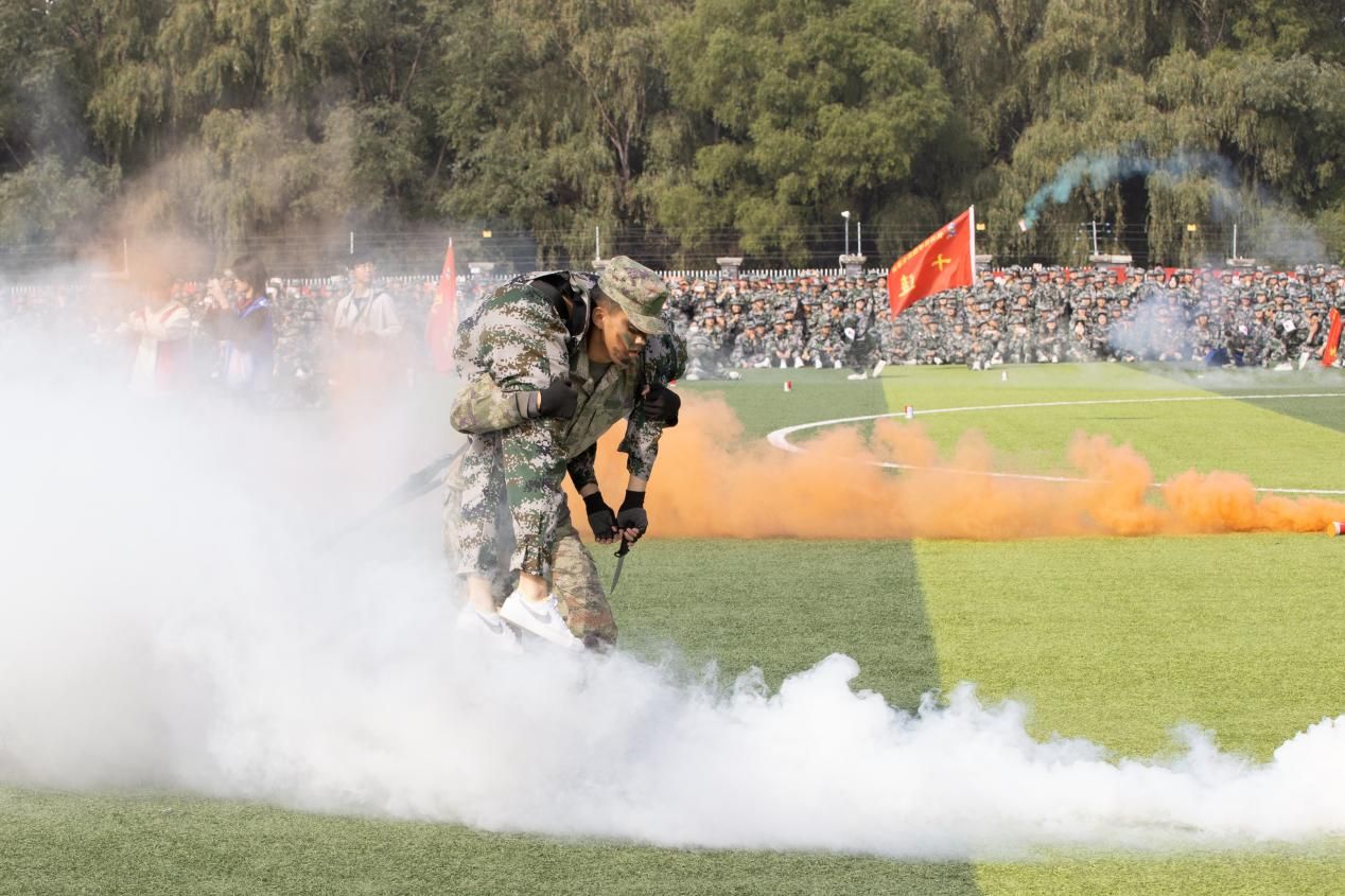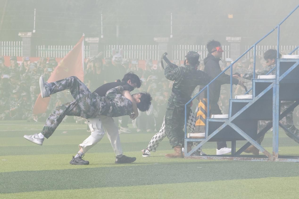 随后,2025级新生以连队为单位进行了分列式汇报表演。22个连队步伐整齐、口号嘹亮、精神饱满,展现出良好的军事素养和昂扬斗志。紧接着,学生方队依次进行了擒敌拳、匕首操表演,动作刚劲有力、连贯娴熟;退役大学生教官进行了队列动作示范表演,展现出过硬的军事作风;教官与学生联合开展的战地救援演练,模拟实战环境,流程专业有序,体现了我校医学特色与军事训练的深度融合。
