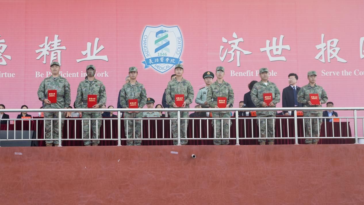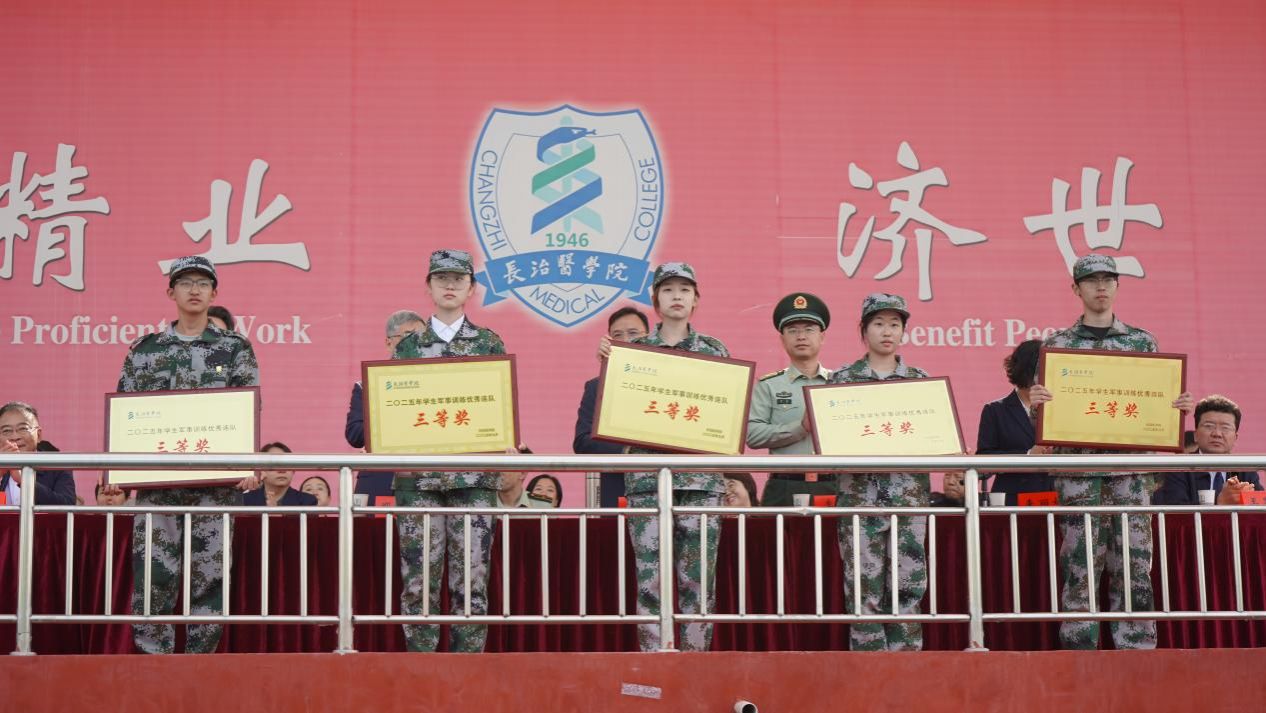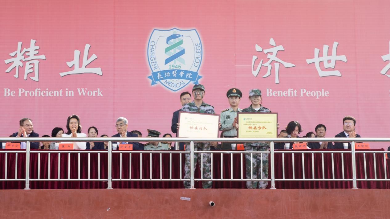 9月29日上午,我校2025级新生军训汇报暨总结表彰大会在五龙校区体育场举行。武警山西总队长治支队副参谋长李斐,校党委书记王金胜,党委副书记郑金平,党委常委、副校长来丽娜,党委常委、宣传部部长崔红,党委常委、组织部部长王黎刚,党委(院长)办公室主任邢育宏,以及各职能部门、院系党政负责人出席大会。大会由来丽娜主持。