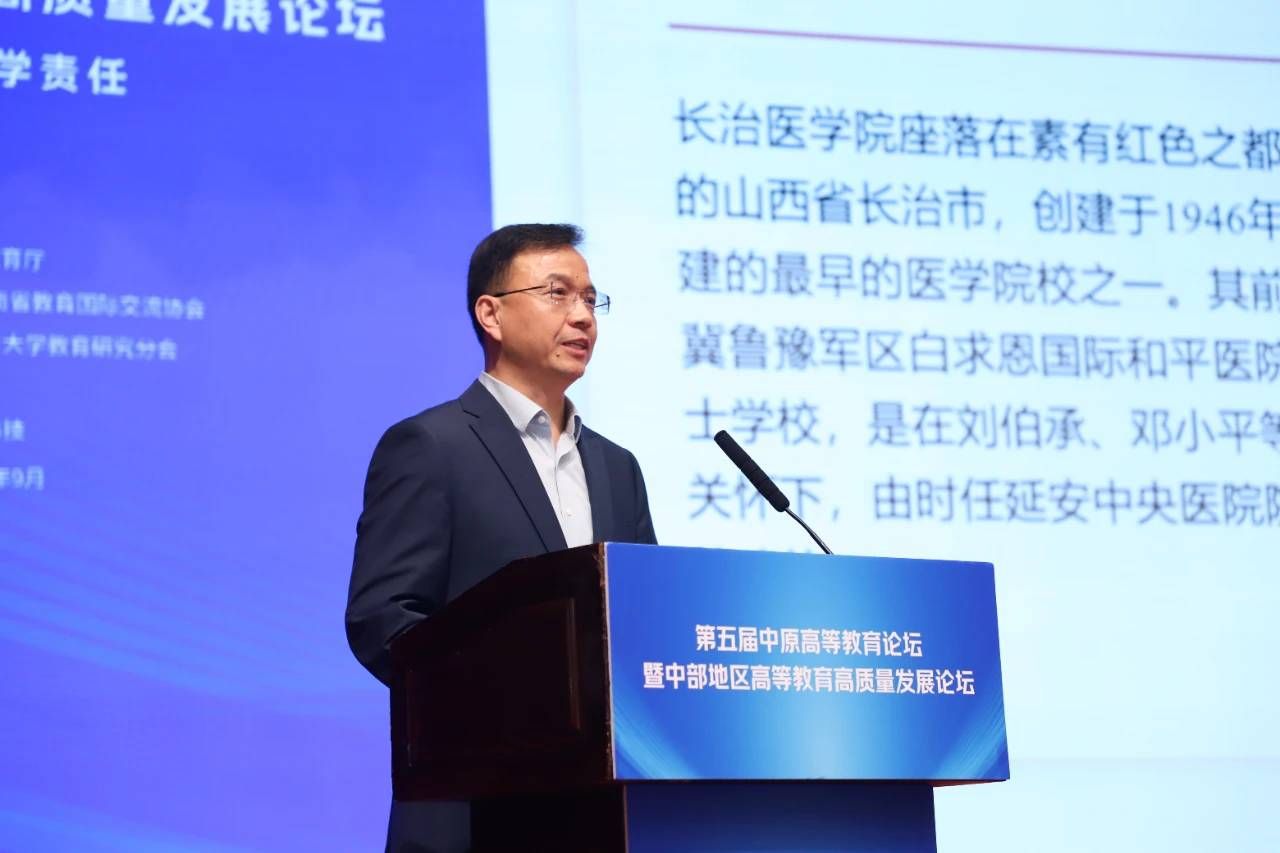 9月28日,第五届中原高等教育论坛暨中部地区高等教育高质量发展论坛在郑州隆重举行。我校党委书记王金胜作为山西省高校代表应邀出席,并以《扎根三晋大地 服务健康中国 奋力建设特色鲜明的高水平应用型医科院校》为题作专题报告,系统分享了学校服务国家战略、践行大学使命的“长医实践”。