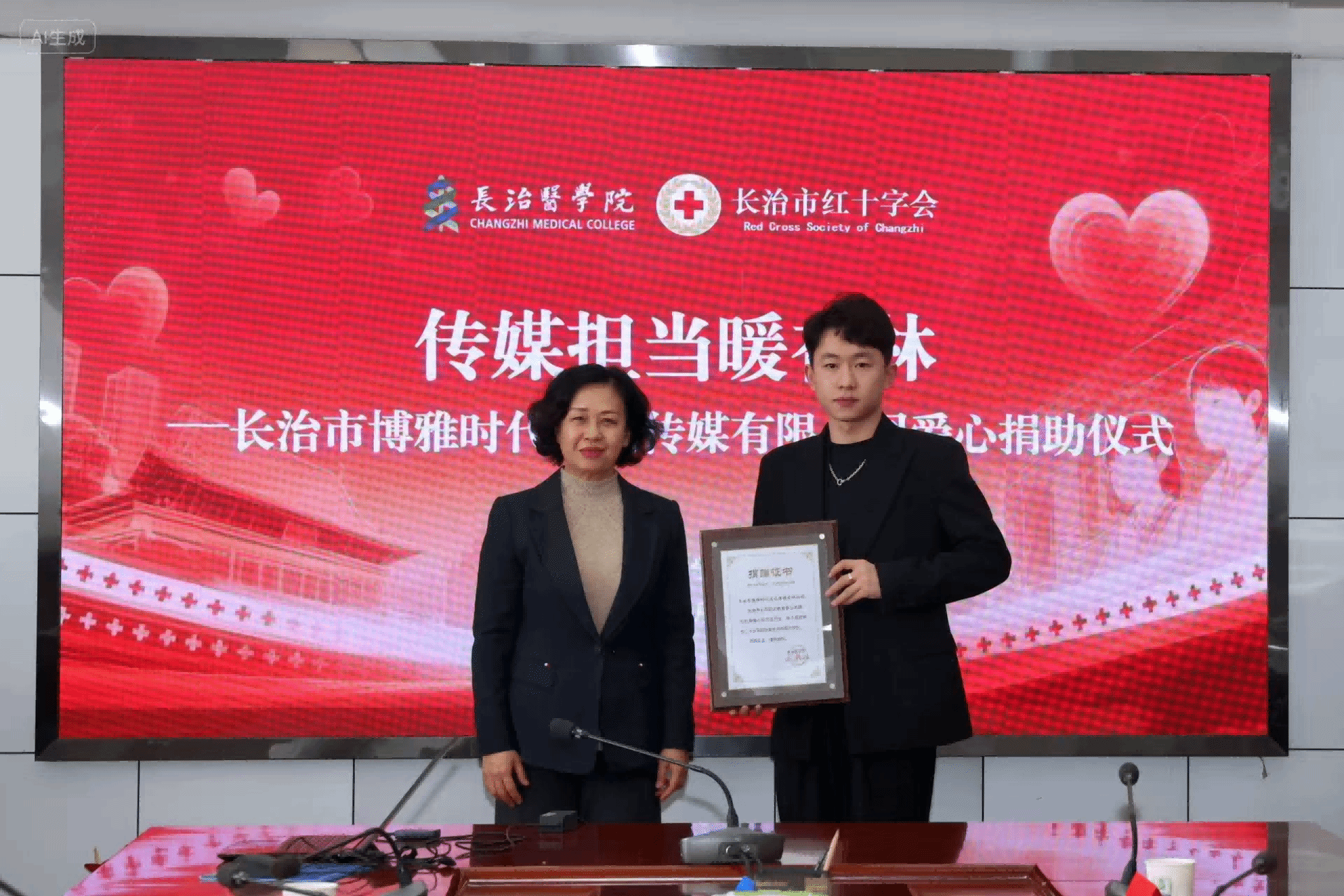 高彦民代表长治市红十字会对博雅时代的爱心善举表示敬意,此次捐赠彰显了“人道、博爱、奉献”的红十字精神。他指出,市红十字会与长医在多个领域深度合作,见证了医学人才培养与红十字事业的双向促进,期待与长医深化人道公益合作,共促医学教育事业发展。
