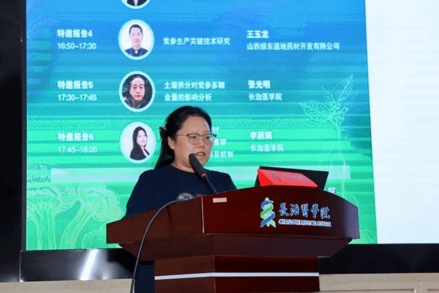 在特邀报告环节,六位专家学者围绕中药资源开发、生态种植、功效研究、产业技术等主题作了精彩分享。海军军医大学张磊教授、中国中医科学院王升研究员、兰州大学胡芳弟教授、山西振东道地药材开发有限公司潞党参种植基地负责人刘飞,以及我校教师张光明、李丽娟分别从不同角度展示了植物育种、党参及相关领域的最新研究成果,现场交流热烈、学术氛围浓厚。