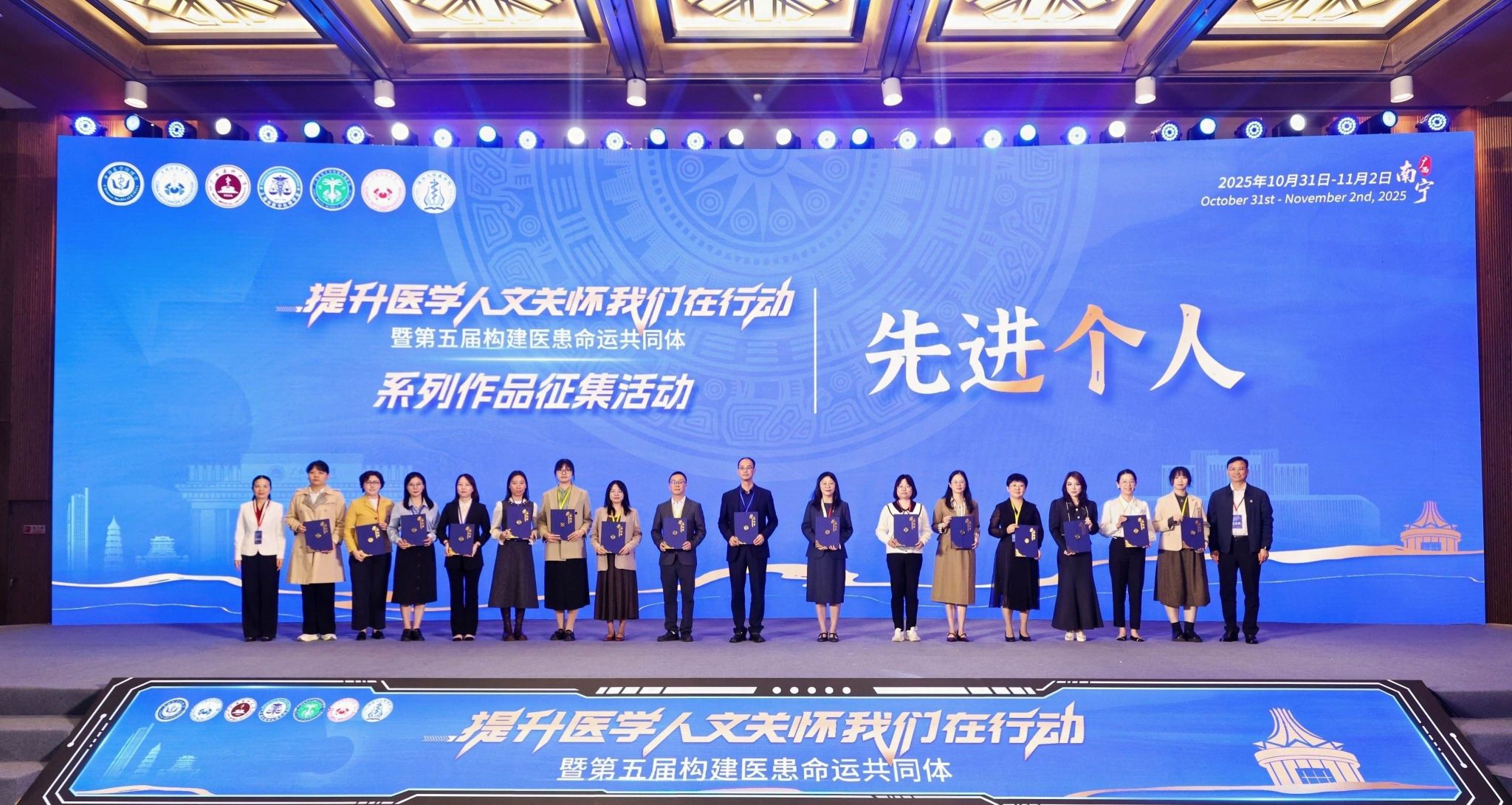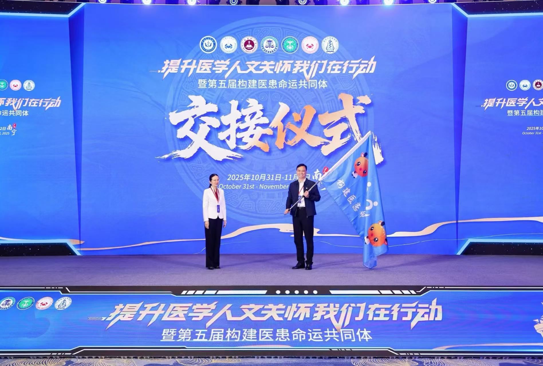 10月31日至11月2日,“提升医学人文关怀我们在行动暨第五届构建医患命运共同体”学术研讨会在广西南宁举办。本次大会由《中国医学伦理学》杂志、中国抗癌协会、广西医科大学、西安交通大学医学部公共卫生学院、北京大学医学人文学院、中国人民大学伦理学与道德建设研究中心、上海市医学伦理学会、清华大学医学院等8家单位联合主办,吸引了全国医学人文专家、医务人员、患者代表、高校师生等500余人齐聚一堂,共商医学人文建设与医患关系优化之道。我校党委书记王金胜、马克思主义学院党总支书记张建芳、医学人文与音乐治疗系肖姣倩博士一行三人参会,学校不仅斩获多项荣誉,更成功接过会旗,将承办第六届学术论坛。