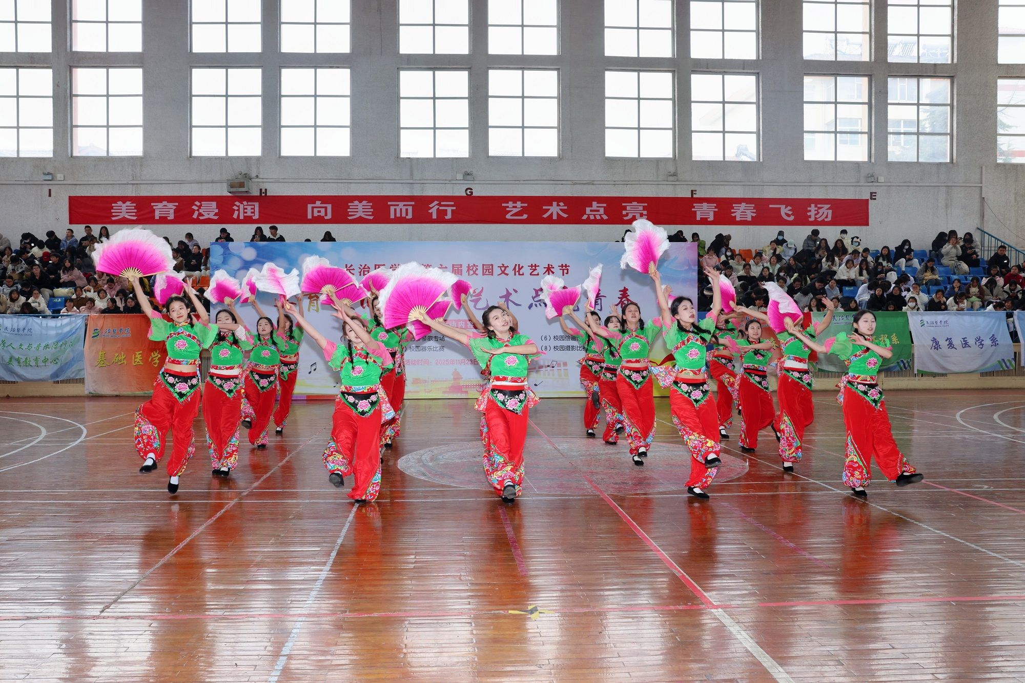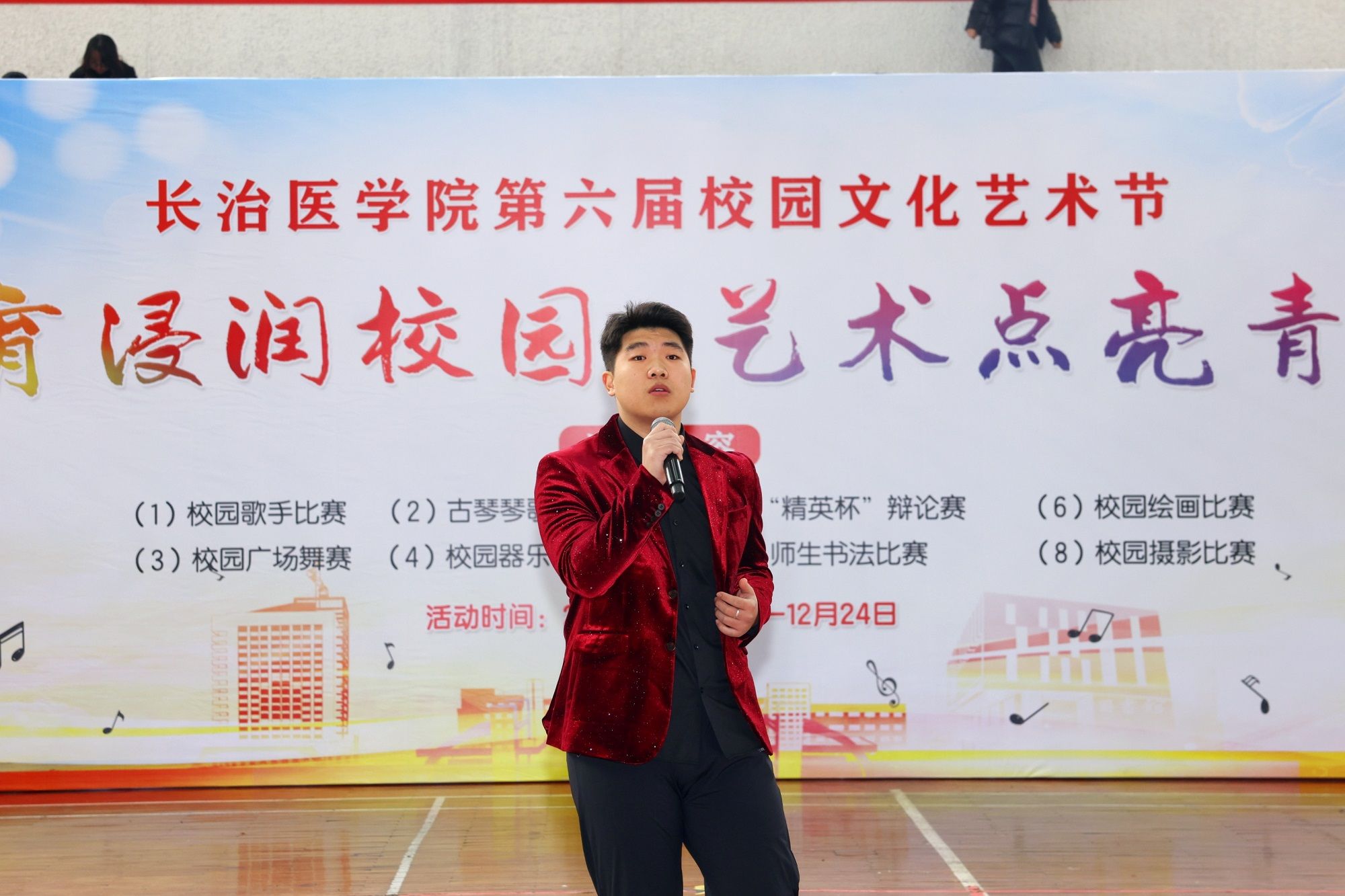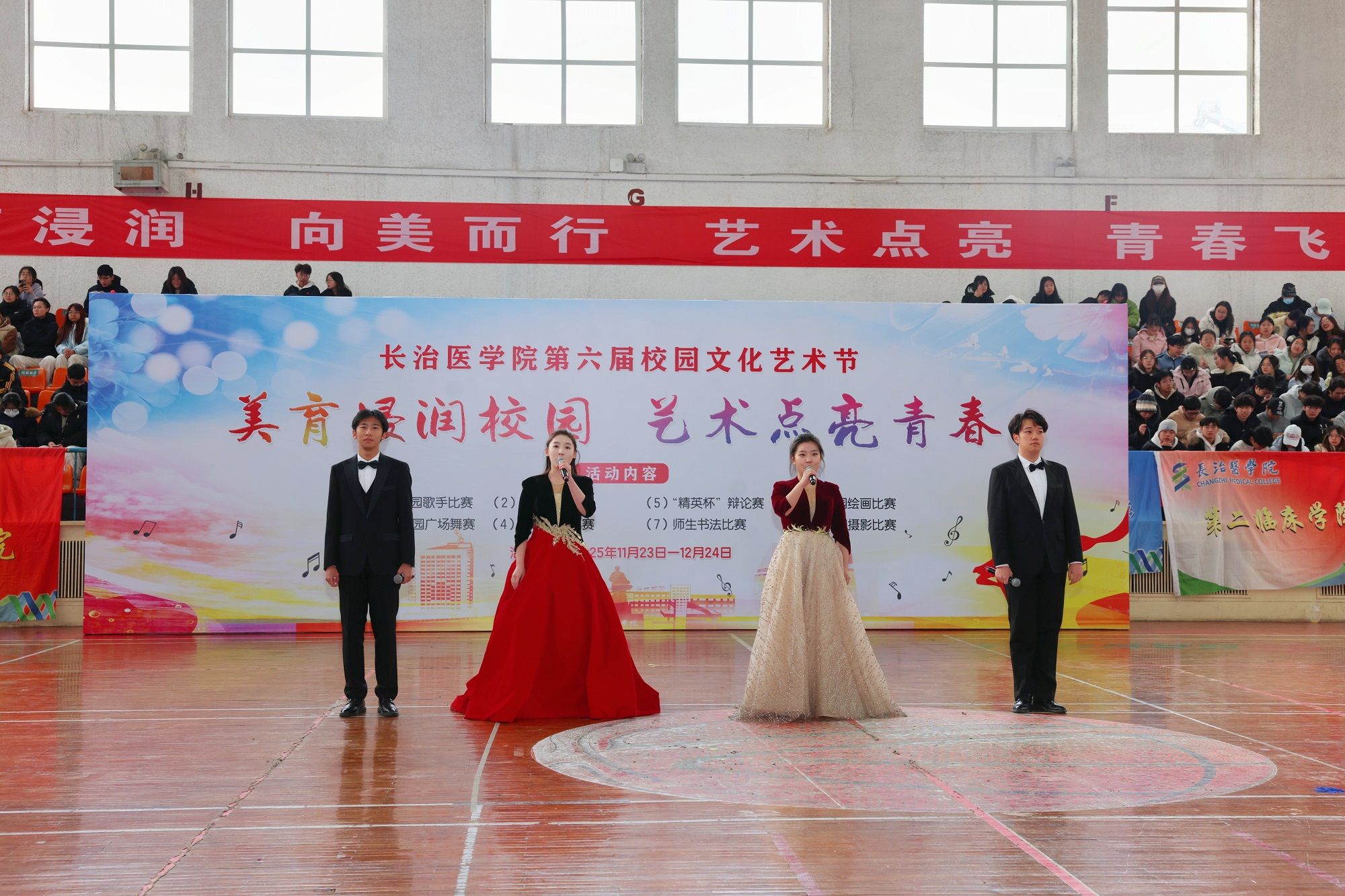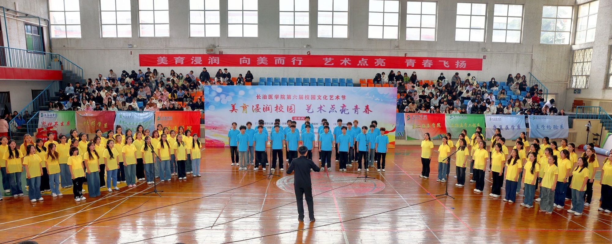 本届文化艺术节以“美育浸润校园·艺术点亮青春”为主题,由宣传部、校工会、校团委、离退休人员管理部、医学人文与音乐治疗系(美育教育中心)联合举办。是学校深入学习贯彻习近平文化思想和全国教育大会精神,落实《教育部关于全面实施学校美育浸润行动的通知》的重要举措,旨在强化学校美育功能,培养德智体美劳全面发展的社会主义建设者和接班人。