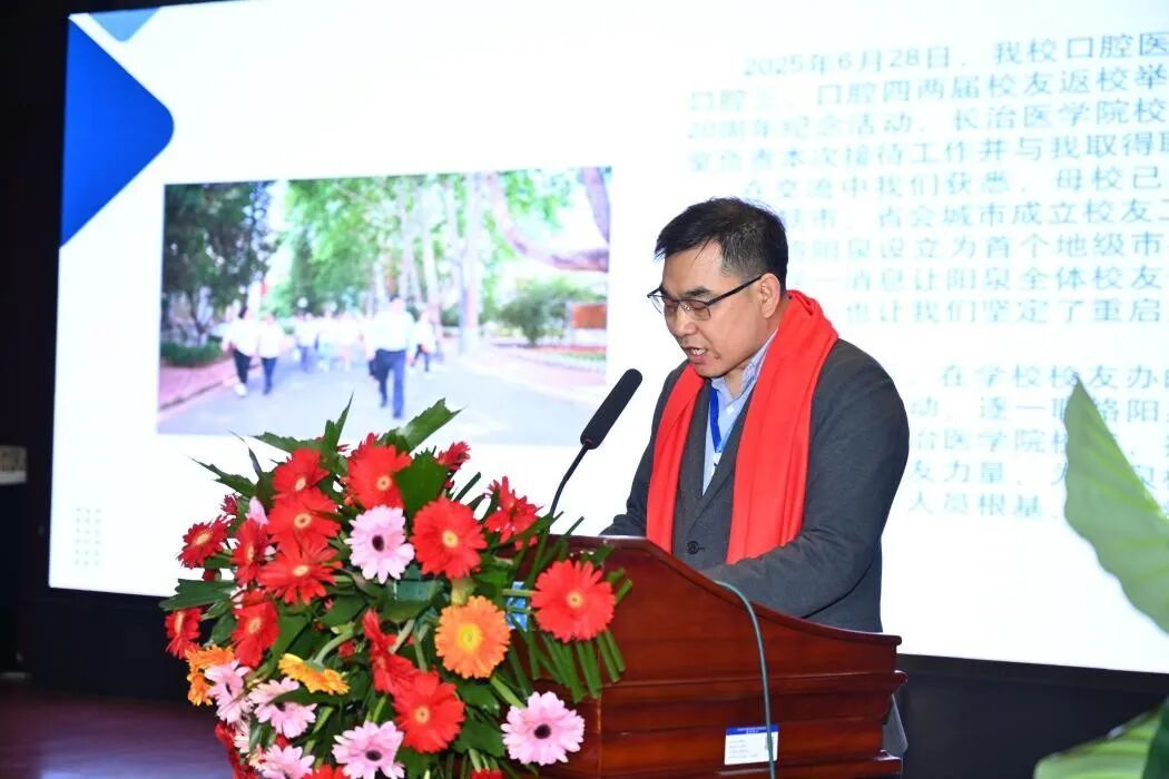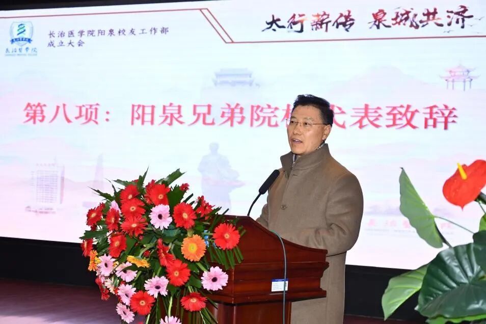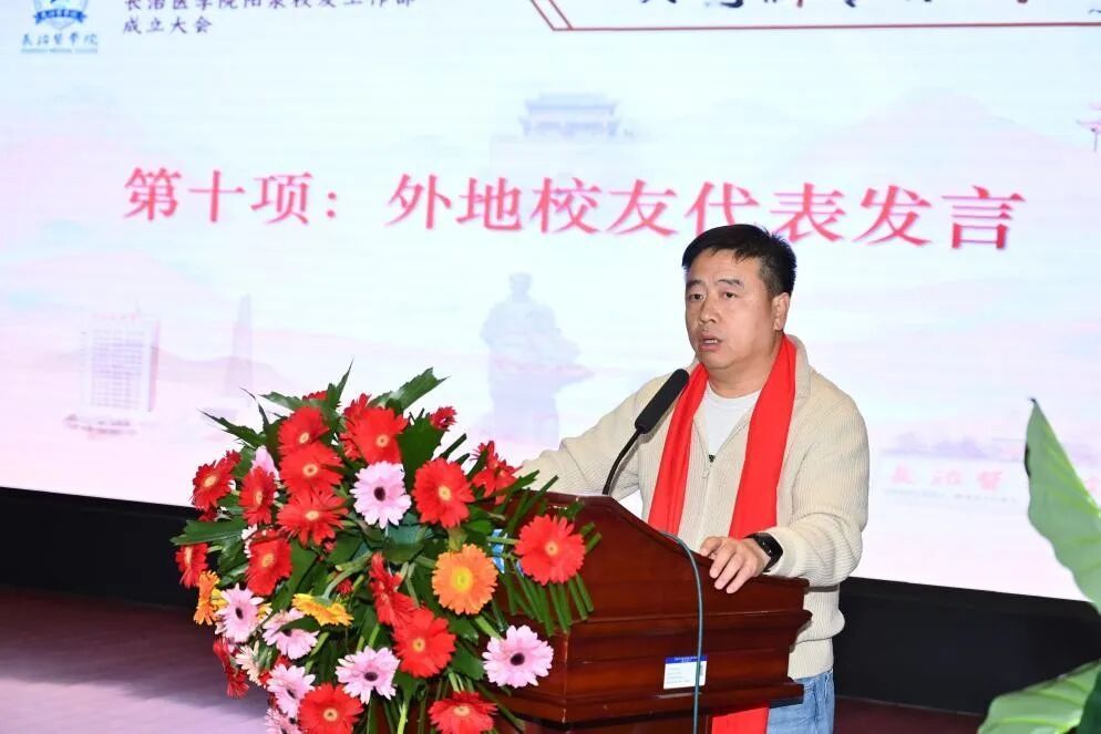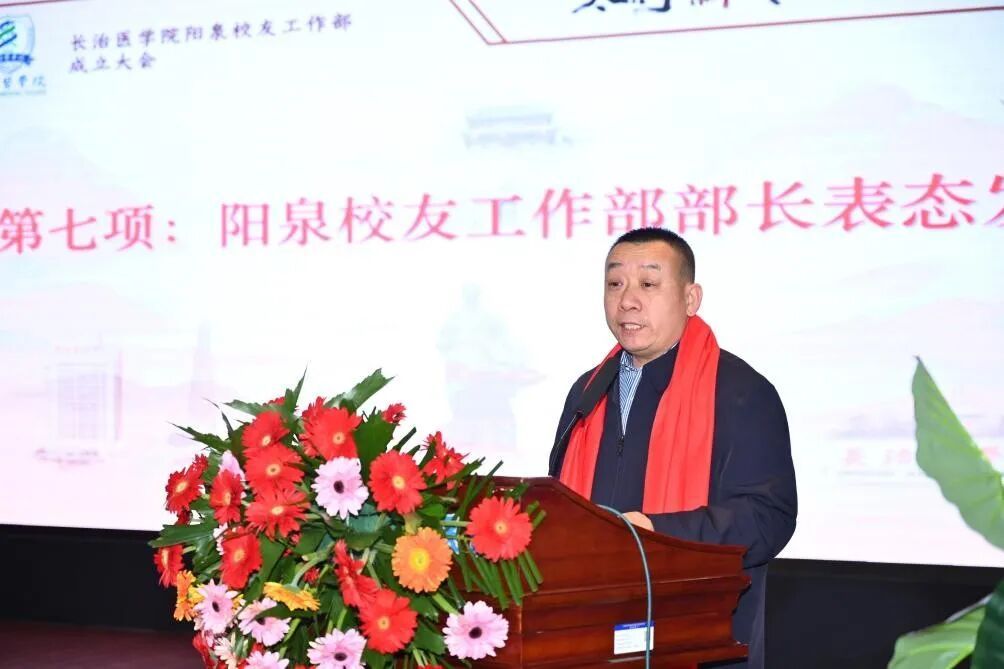 阳泉校友工作部部长李学然代表工作部郑重表态,在今后的工作中将以“服务”为本,建设温馨可靠的“校友之家”;以“联动”为桥,构建共生共享的“发展平台”;以“传承”为魂,当好长医精神的“播种者”。