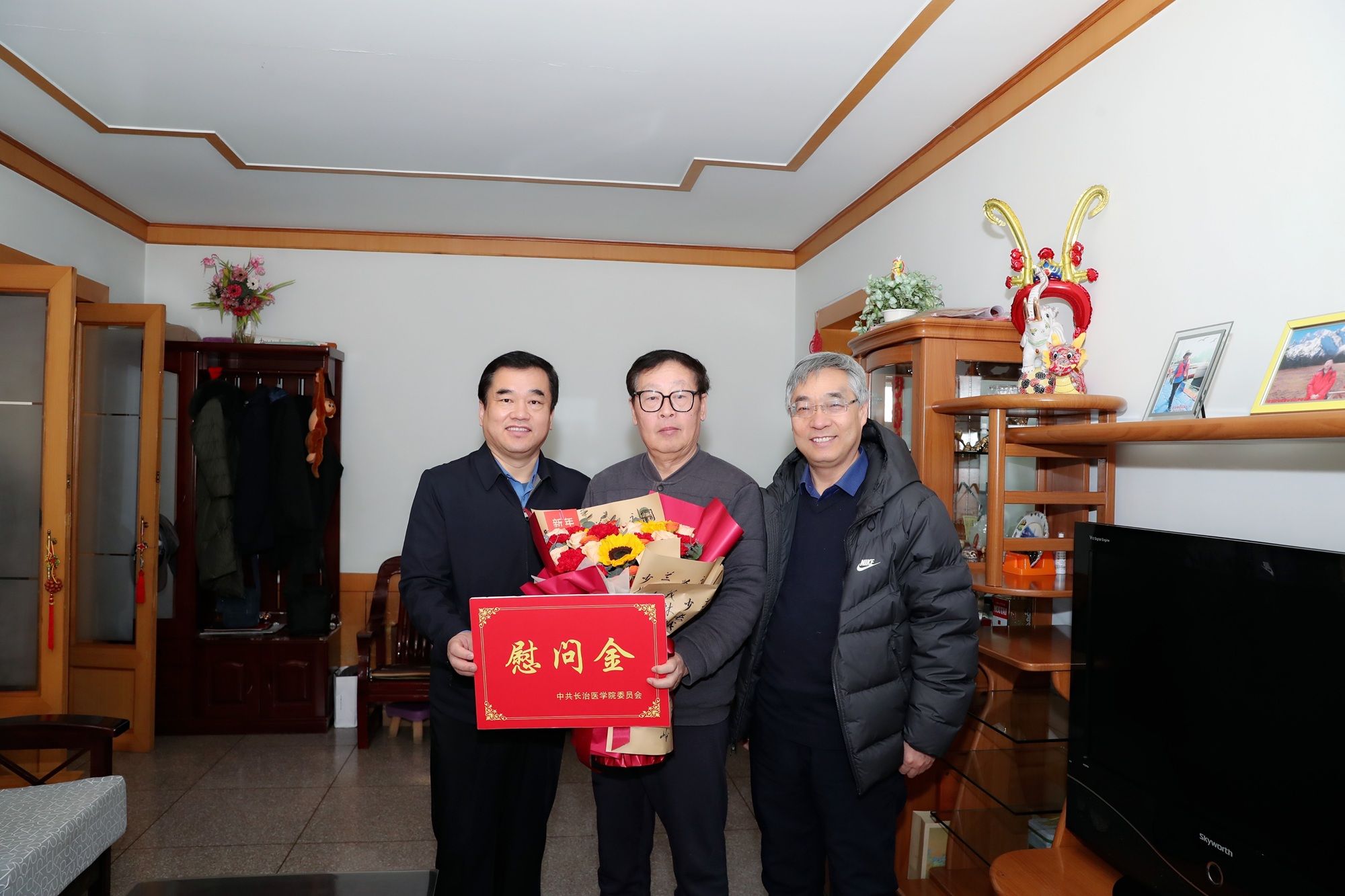 新春将至,暖意先行。2026年新春佳节来临之际,1月16日上午,校党委书记王金胜,党委副书记、校长王旭,党委副书记郑金平,党委常委、纪委书记、监察专员段发明,党委常委、副校长尚进平等校领导带队走访慰问老党员、老干部、生活困难党员、困难职工和全省优秀共产党员,为他们送去组织的关怀与温暖,并致以节日问候和新春祝福。党委(院长)办公室、组织部(党校)、离退休人员管理部、工会等部门负责同志陪同走访慰问。