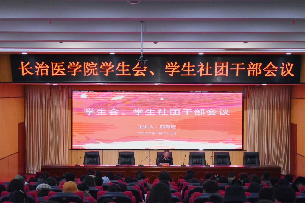 邢育宏为同学们解读了《长治医学院学生社团建设管理办法》《长治医学院学生会(研究生会)组织改革实施方案》两个重要文件,重点就学生会与学生社团两个学生组织之间的关系和各自的职能定位、基本任务、管理机制、干部遴选条件及程序作了详细说明,并针对同学们提出的问题进行了一一解答。他希望学生干部进一步提高政治站位,增强大局意识,充分发挥模范带头作用,以“功成不必在我”的精神境界、“功成必定有我”的历史担当,推进学生会组织改革和学生社团管理改革,为学校建设发展、人才培养、校风学风建设作出新贡献、再立新功勋。