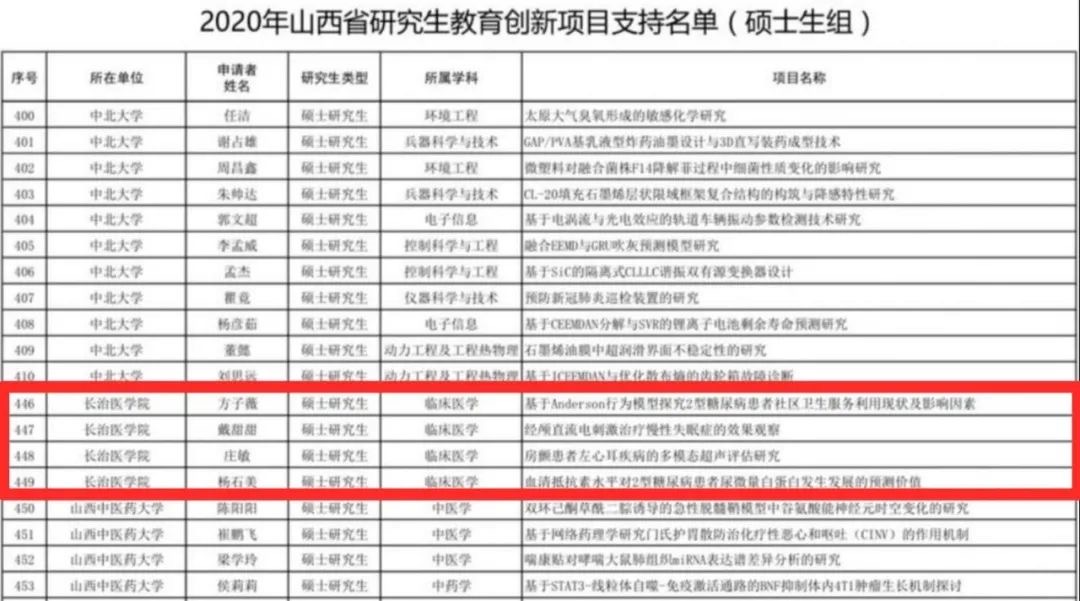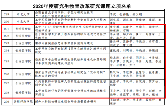 根据山西省教育厅《关于组织申报2020年度研究生教育创新计划各类项目的通知》精神,学校高度重视,认真组织研究生指导教师、任课教师及研究生积极申报,经个人申报、专家评审等程序,向省教育厅推荐出13项研究生教育改革研究课题和4项研究生创新项目。