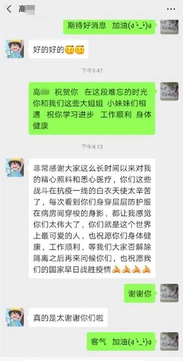 入院一周后,高某身体基本恢复正常,但病情反复,核酸检测未转阴。医院领导和病区医护人员高度重视,经过与省、市专家多次会诊,科学决策,精准施救,采用中西医结合同步治疗,注重对患者的心理疏导,高某病情逐步好转,痰、血液及咽拭子核酸多次检测均为阴性。经长治市新冠肺炎救治专家组评估,符合国家卫生健康委《新型冠状病毒肺炎诊疗方案(第六版)》解除隔离及出院标准,报省专家组审核后,同意患者出院。