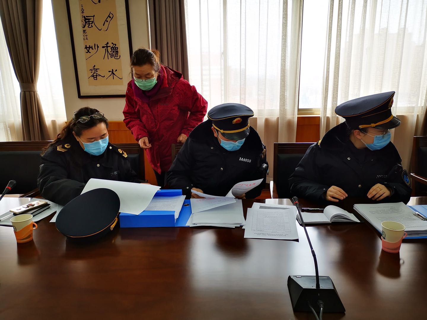 我校学工部部长邢育宏,人事处处长姚慧卿,后勤保障处副处长韩翠萍、杨君分别从疫情期间学生管理、教职工管控、应急防治措施落实、疫情防控物资储备等方面进行汇报。