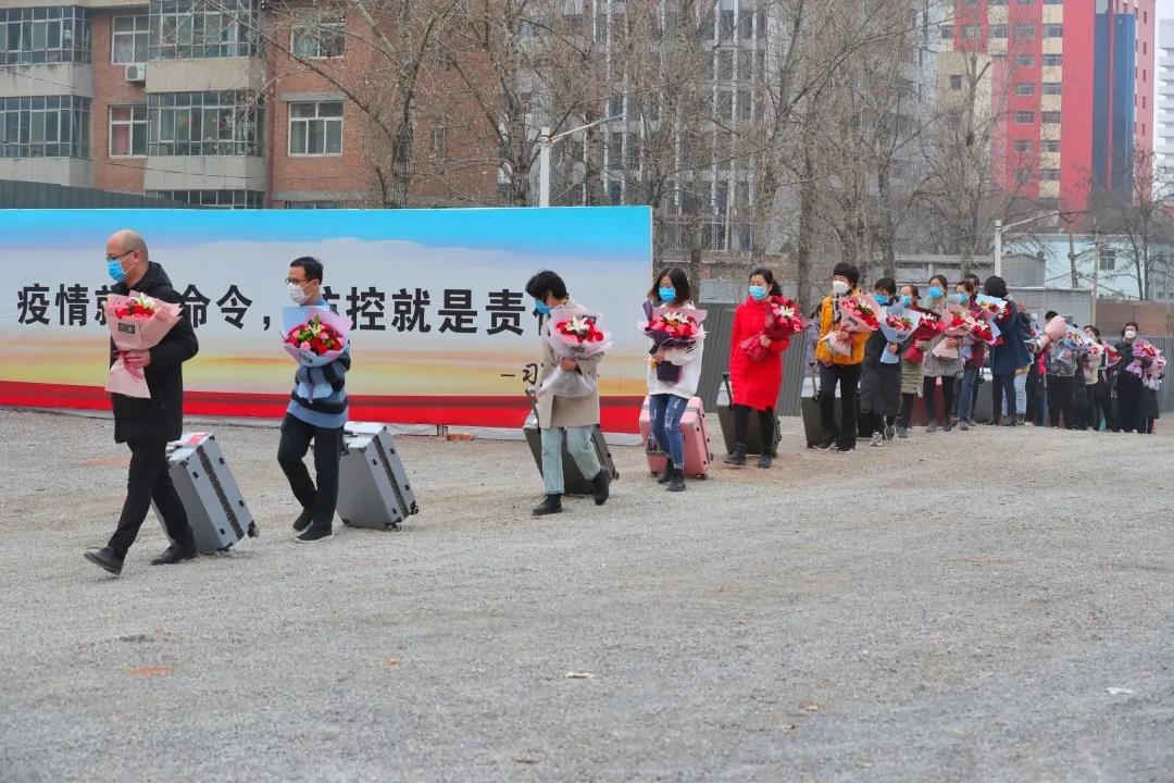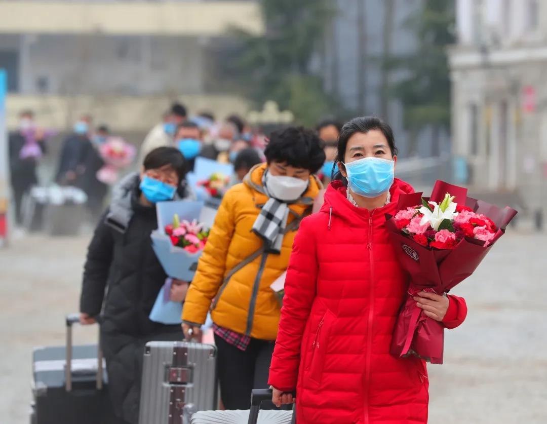 下午3点,30名医务人员手捧鲜花从隔离病区有序撤出。和平医院党政领导为他们举办简短的迎接仪式,向他们的辛勤付出表示感谢,为他们的不辱使命感到骄傲,希望他们能够利用接下来两周的时间安心调整,以饱满的热情迎接下一步工作。