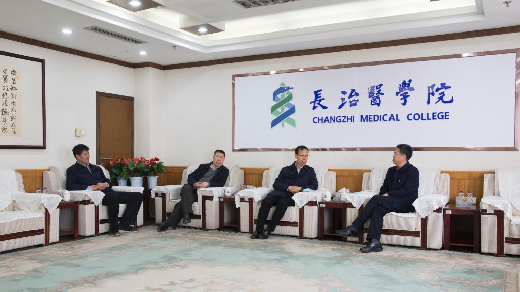 4月15日上午,长治市襄垣县委书记张晋伟与我校党委书记李华荣、校长郑建中在科技楼11层会客室座谈。襄垣县委副书记、统战部部长李瑜,学校党委(校长)办公室主任王黎刚参加座谈会。