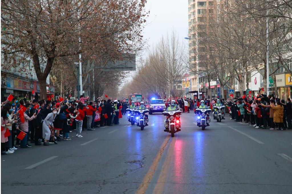 锣鼓喧天,鼓乐齐鸣,警车开道,英雄归来!