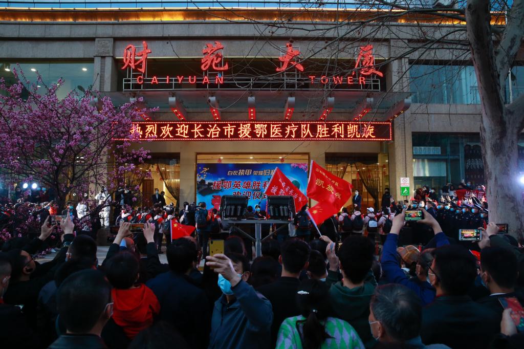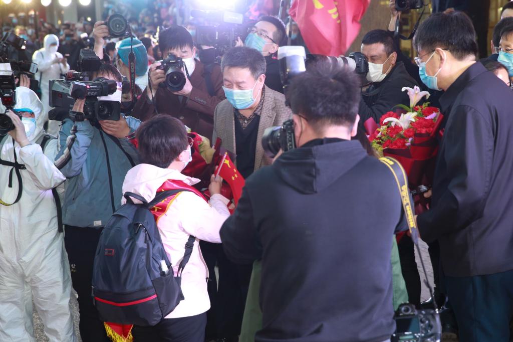 今天上午,完成使命的山西医疗队离潜返晋,踏上胜利归途。