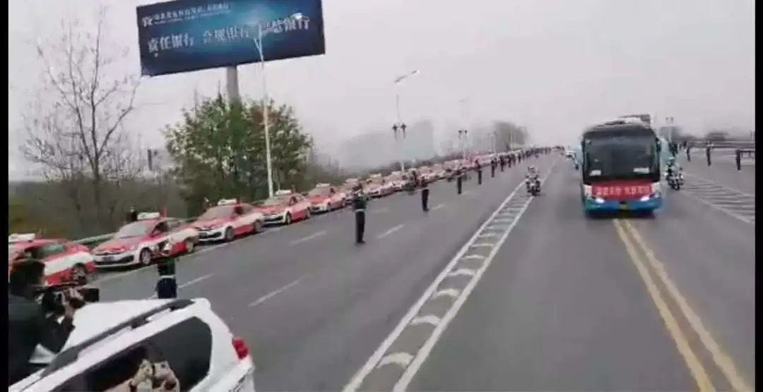 一大早,从潜江市应急医院到潜江高速路口,当地相关部门工作人员、医务人员、警察、志愿者、成千上万的群众,纷纷来到医疗队途经的道路两旁,齐齐望着返晋车辆驶来的方向,为他们送行。
