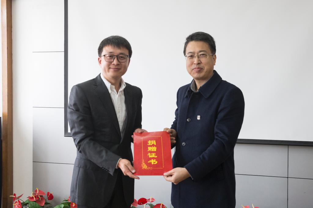 宋晓亮代表学校接受捐赠。