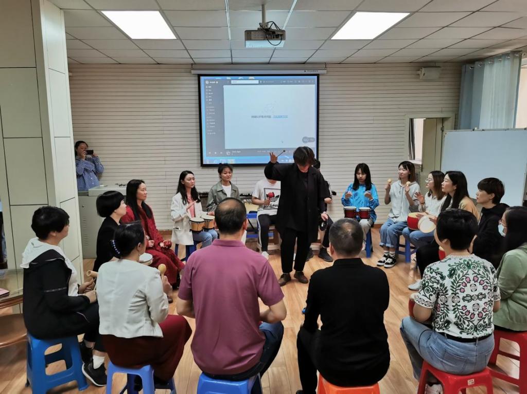 会后,考察团实地考察了音乐治疗专业实践教学基地,并现场观摩、亲身参与体验鼓圈表演和特殊儿童音乐治疗展示课。
