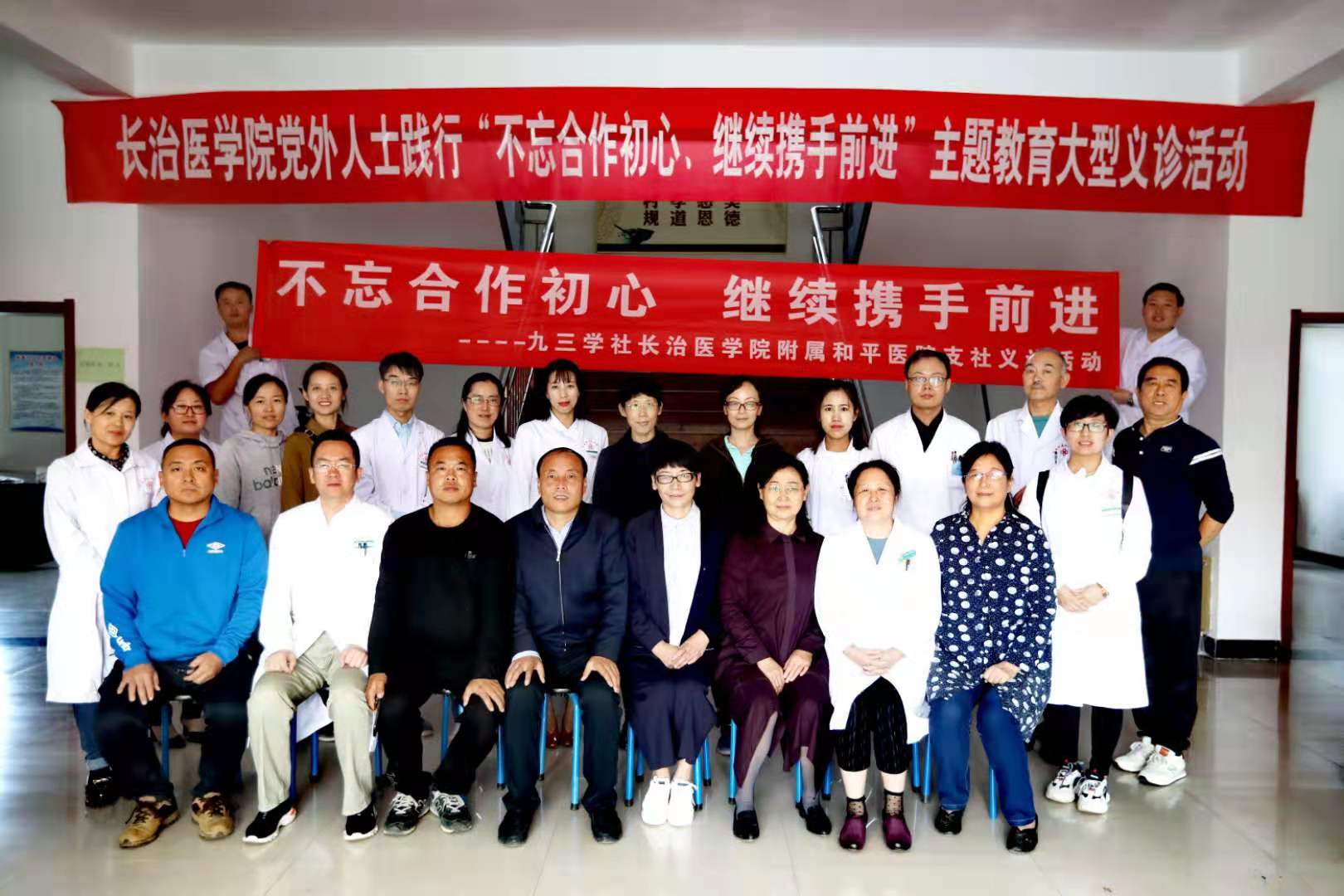 在中华人民共和国成立70周年之际,9月29日上午,我校党委统战部组织党外人士到五龙校区驻地——上党区南董村开展大型义诊活动,积极践行“不忘合作初心,继续携手前进”主题教育。本次义诊群众共计1000余人次,发放板蓝根、奥美拉唑、感冒冲剂、丹参片、止咳糖浆等10余种免费药品和体温计。