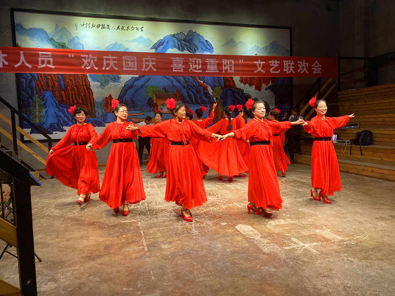老同志们通过自编自演的节目从不同视角讴歌党、讴歌祖国、讴歌人民,深情回顾新中国成立70周年来的峥嵘岁月和光辉历程,用歌声和舞步抒发了爱党、爱国、爱校情怀,展示了老有所乐、健康向上的精神风貌,表达了对祖国和学校的美好祝福和对未来的美好憧憬。