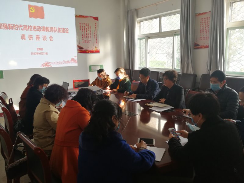 座谈会上,大家围绕我校关于加强思想政治理论课教师队伍建设实施意见的制定工作进行了深入讨论。思政部党政负责人及各教研室主任既肯定了学校的实施意见,又结合我校思政队伍的实际情况,从进一步提高思想政治素质、充实思政课教师队伍、提升学历层次、改善职称结构、加强集体备课以提高教学效果、开展科研工作以提高教学水平、加强培训以提升教师素质、落实建立名师工作室等方面提出了具体建议。