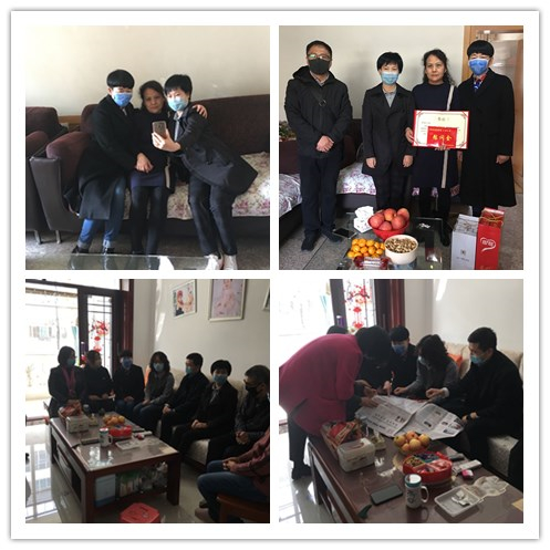 3月27日上午,我校党委常委、统战部部长常秀英陪同长治市委常委、统战部副部长王旭琴和长治市政协副主席、民盟长治市委主委王卫军等一行15人,到援鄂医疗队员农工党党员李春雨、民盟盟员李锐家中进行慰问,向他们送去美好祝福,并致以诚挚感谢。