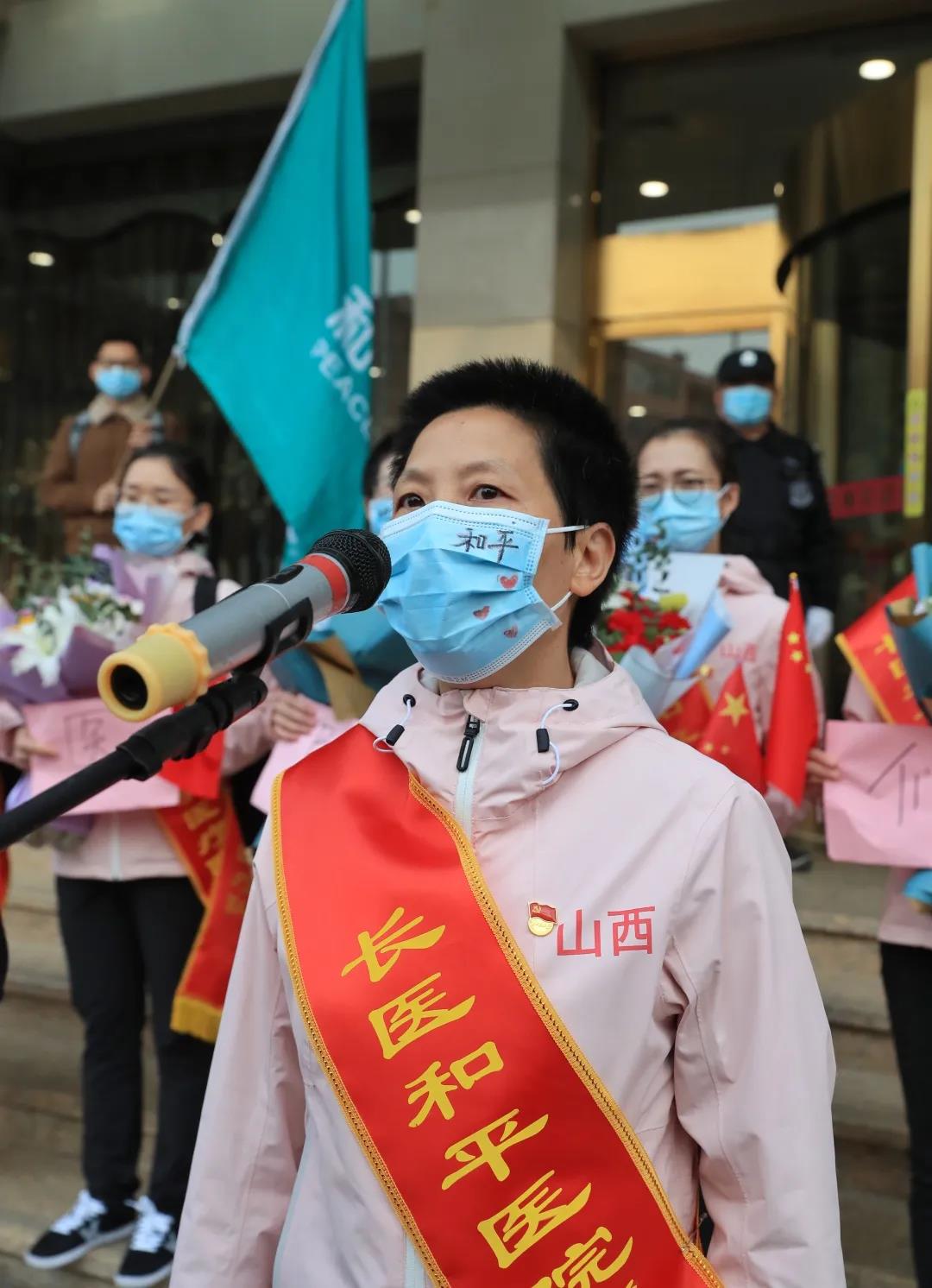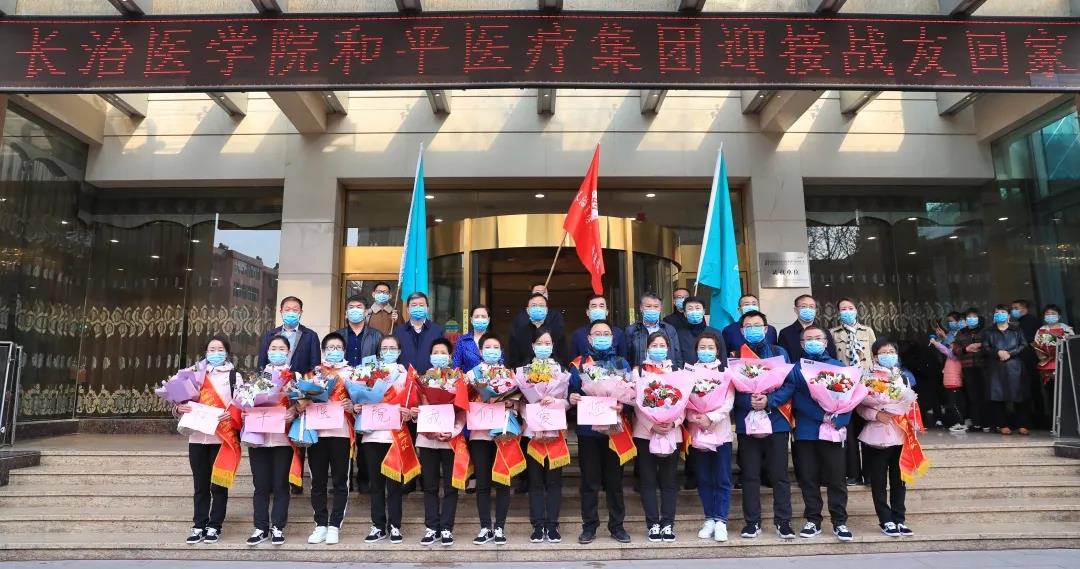 大家离开长治援助湖北时候还是寒冬时节,今天已经是春暖花开。我们经历了出征、战斗、凯旋。今天,队员们隔离结束,准备返回单位,返回工作岗位,返回家庭。在此,我代表学校党委向各位勇士的回归表示热烈的欢迎和衷心的感谢。希望大家回到岗位以后,逐渐在适应当前的工作岗位需求,认真履职,践行长医人、和平人、和济人勇于担当、敢于拼搏、善于作战、敢于胜利的精神,你们是和平的英雄,和济的英雄,你们是长医的骄傲。