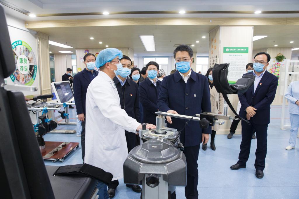 座谈会后,李华荣一行实地考察了市二院体检中心、临床技能中心、康复中心、骨科研究所,前往上党区苏店镇考察了市二院医养结合护理分院。