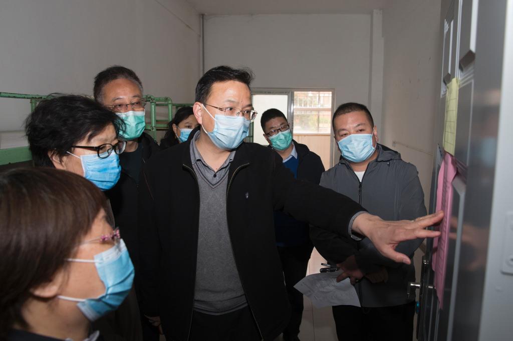 党委副书记张芳萍、副校长王金胜陪同验收小组实地查看了我校五龙校区餐厅、教室、宿舍、隔离室。验收小组了解了学生就餐流程,示范了体温检测方法,查看了学生宿舍公共区域清洁消杀及食品卫生情况。