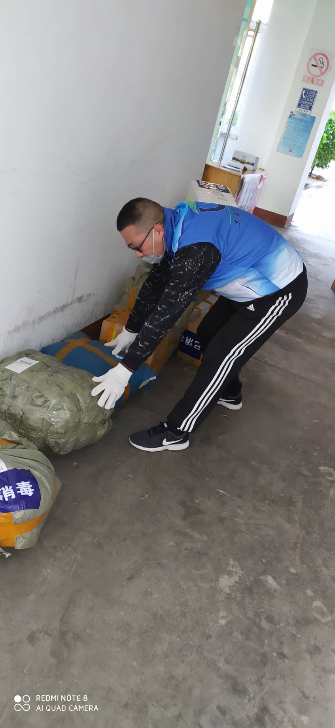 从10日早上8点至晚上22点,志愿者们一刻不停地接收、分拣、运送快递,对每个快递物表进行“84”喷雾消毒,并贴上“已消毒”的爱心标签,让学生们更加放心地收取快递。