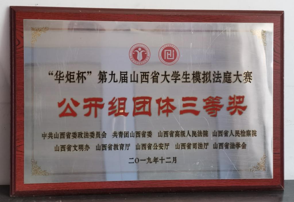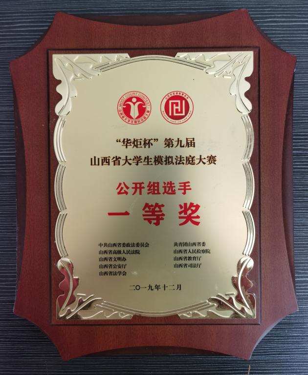 近日,从中共山西省委政法委员会、共青团山西省委、山西省高级人民法院、山西省人民检察院等多家单位联合下发的《关于“华炬杯”第九届山西省大学生模拟法庭大赛的表彰决定》中获悉,我校荣获公开团体三等奖与最佳组织奖;郭福娥、范林杰两位老师获“最佳导师奖”;李仕珺、李箐两位同学分别荣获公开组一等奖、二等奖。