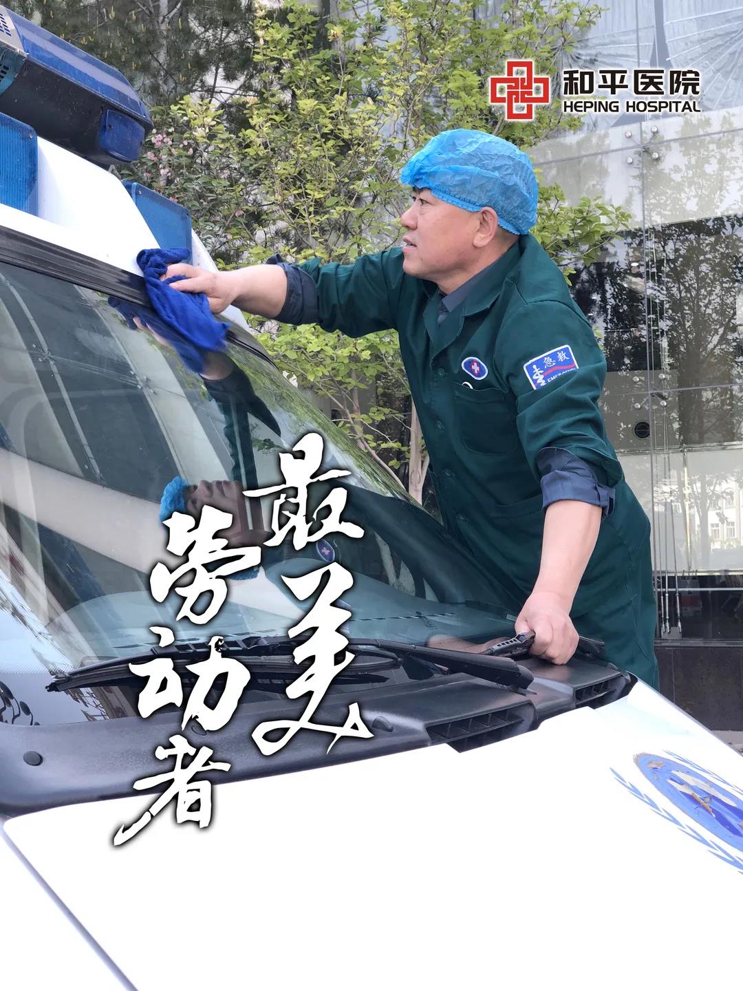 急诊科:司机杨师傅正在擦拭救护车,随时待命出发。