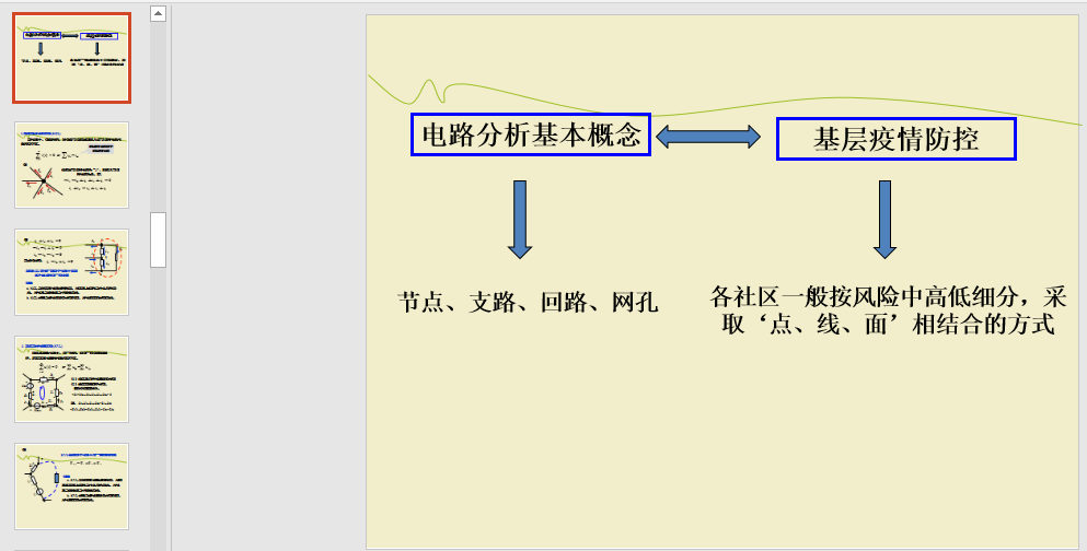 教师讲授专业课程时,在尊重课程内容的科学性、逻辑性及完整性的基础上,强调对学生家国情怀、工程伦理、科技战“疫”等素质培养,为塑造德学兼修的高素质新工科人才提供强大的思想引擎。李娜老师在讲授《电工学》课程“电路中的节点、支路、回路、网络等概念”内容时,类比我国各地区疫情的防控措施,指出,新冠肺炎的防控,各社区一般按风险中高低细分,采取‘点、线、面’相结合的方式,构建了基层疫情防控大网络;讲授“无源元件”时,尤其在讲解电感、电容等元件的储能特性时,结合中华民族、党和国家曲折但永远朝前的发展历史,向学生传递“目前我们国家虽处于特殊时期,疫情对我们而言是一个波折和困难,但却如储能元件般让国家与社会蓄聚能量、永远向前”信念。
