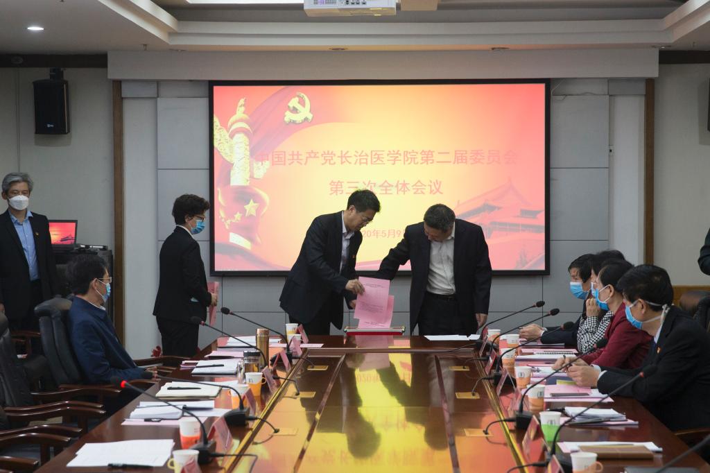 5月9日上午,中国共产党长治医学院第二届委员会第三次全体会议在科技楼1号会议室举行。校党委委员24人出席会议,会议由党委书记李华荣主持。