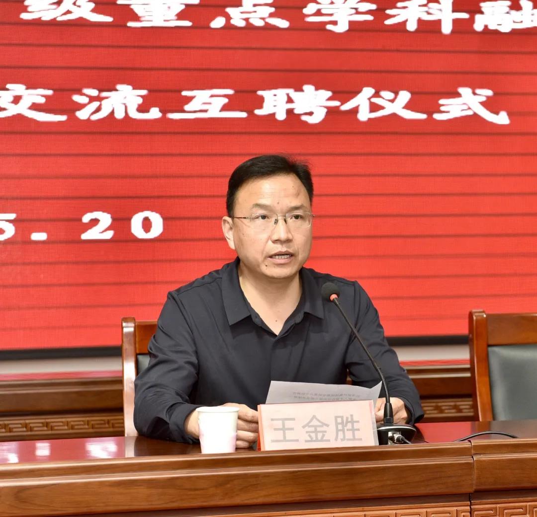 5月20日下午,和平医疗集团统筹省级重点学科融合发展人才常态化交流互聘仪式在长治医学院附属和济医院多功能会议室举行。学校党委副书记、校长郑建中教授,副校长王金胜教授,医管处处长牛庆国以及附属和平、和济医院领导班子成员出席仪式。和平医疗集团理事医院院长、两所附院相关职能科室负责人、省级重点学科普外科主任、护士长等交流人员共计100余人参加会议。会议由学校副校长王金胜主持。