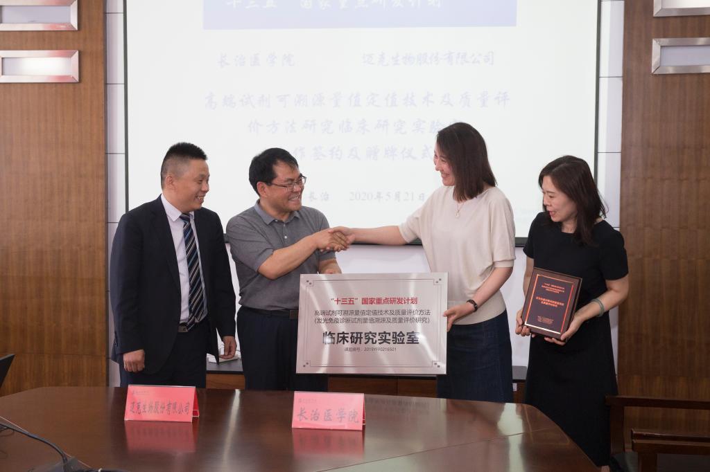 迈克公司为“十三五”国家重点研发计划高端试剂可溯源量值定值技术及质量评价方法研究临床研究实验室赠牌。